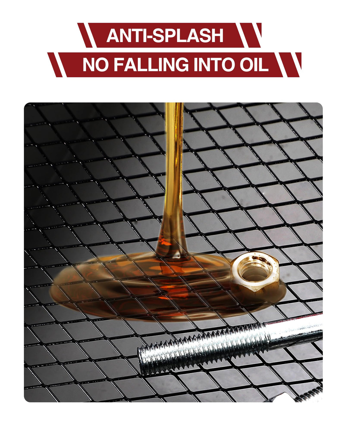 ??[STURDY BUILD]- The KYBOLT 15 gallon oil drain pan is crafted from robust steel material, ensuring exceptional strength and durability. Its heavy-duty construction makes it ideal for consistent use in garages or workshops, capable of withstanding the rigors of frequent oil changes. | ??[AMPLE CAPACITY] - Boasting a generous 15-gallon capacity, this oil drain pan is designed to accommodate substantial amounts of oil from various vehicles including cars, trucks, SUVs, and more. Its impressive capacity minimizes the need for frequent visits to the recycling center, saving you time and hassle. | ?? [FOLDING T-HANDLE]: The folding T-handle design allows for easy positioning of the drain under vehicles, making it convenient for storage, movement, and pulling. | ?? [MULTI-PURPOSE APPLICATION]- Apart from oil changes, this oil drain pan proves to be highly versatile as it can also be utilized for handling various automotive fluids such as coolant and transmission fluids. With its efficient design and practical construction, it becomes an indispensable tool for any garage or workshop, significantly streamlining routine maintenance tasks and reducing both time and effort expended. | ??[Mobility Enhancement] - The KYBOLT oil drain pan is equipped with four caster wheels (two stationary and two swivel), facilitating effortless maneuverability and placement, simplifying the oil-changing process. The stationary wheels ensure stability and solid support, while the swivel wheels enable seamless navigation across the garage or workshop floor.