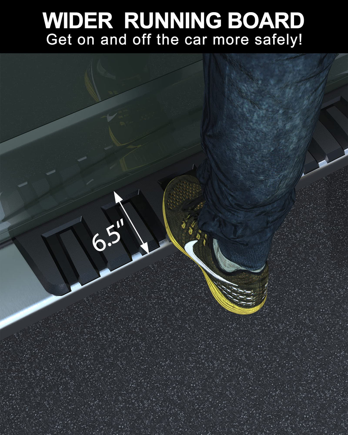 ??[Factory Fitment] Only For Crew Cab(4 Full-Size Doors). Compatible With 2019 2020 2021 2022 2023 2024 Chevy Silverado/Gmc Sierra 1500, 2020 2021 2022 2023 2024 Chevy Silverado/Gmc Sierra 2500Hd 3500Hd Crew Cab. Note: 2019 Chevy Silverado 1500 Ld,2022 Chevy Silverado 1500 Ltd,2019 2022 Gmc Sierra 1500 Limited Are Excluded. | ??[Quick And Easy Setup] Complete Installation In 20 Minutes Solo. | ??[Heavy-Duty Material] Constructed From Heavy-Duty Stainless Steel, Making Them Both Durable(400 Lbs Weight Capacity) And Never Rust. | ??[Wider Board] 6.5' Wide Board, Combined With Abs Plastic Textured Surface, Providing A Secure Grip Even In Wet Or Slippery Conditions. | ??[Professional Customization] Designed Specifically For Chevy Silverado/Gmc Sierra, Provide A Secure And Convenient Step, Making It Easier To Enter And Exit Your Truck.