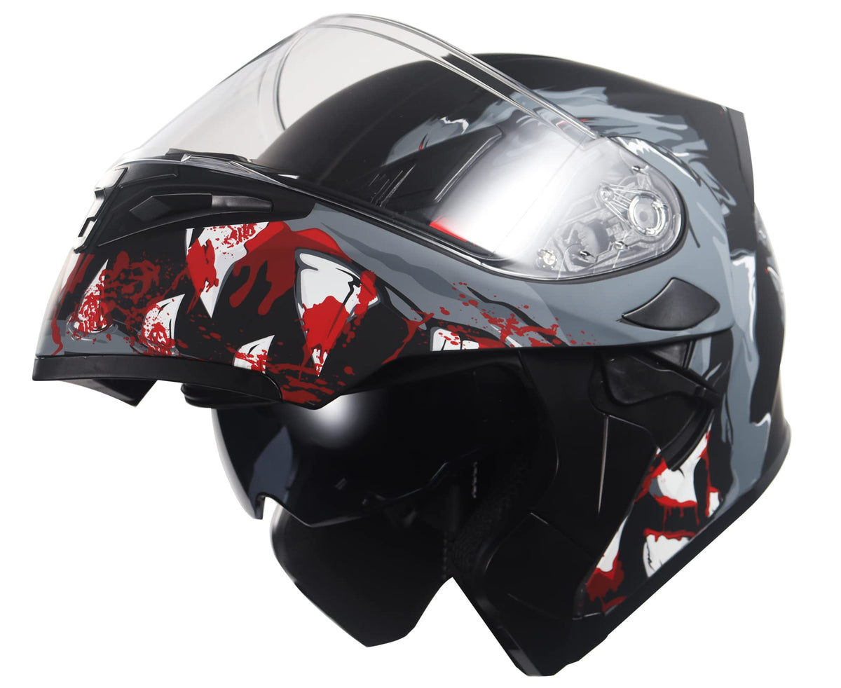 Kypara Motorcycle Dual Visor Flip Up Modular Full Face Helmet With Dot Certification Of Impressionism (M, Bloodhound)