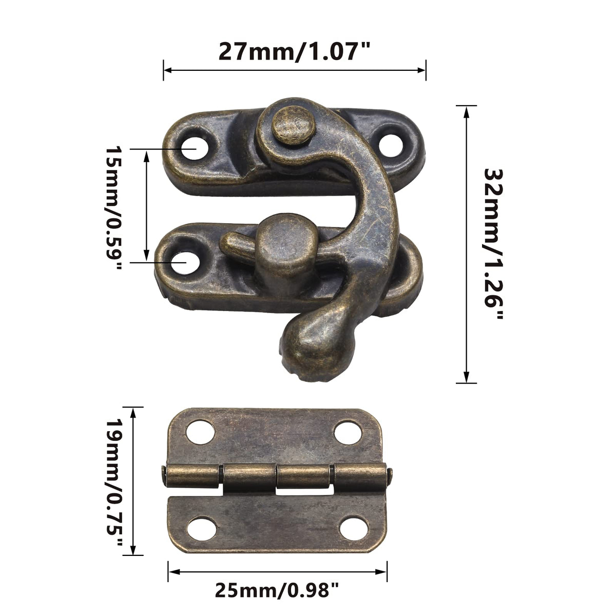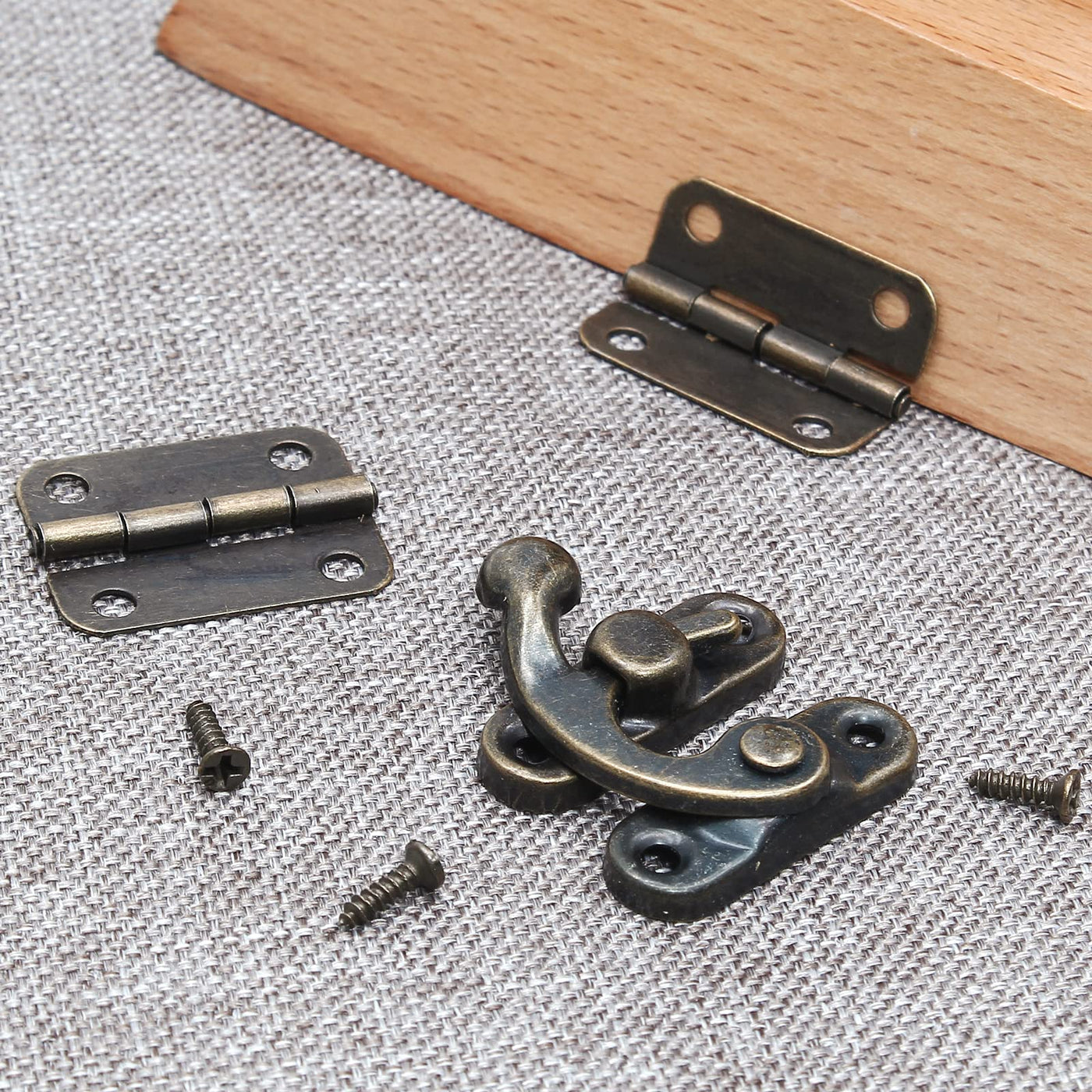 Kyuionty Antique Bronze Right Latch Hook Hasp, Small Box Hinges And Retro Latch Lock For Decorative Cabinet Small Wooden Jewelry Box Gift Box (1 Pcs Hasp Catch + 2 Pcs Hinges)