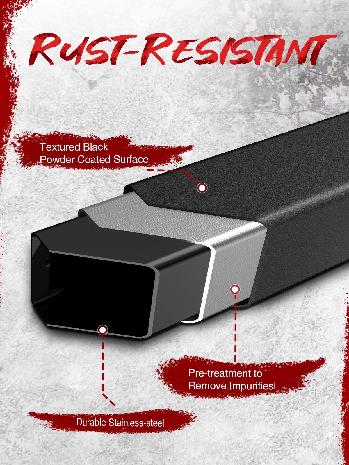 FITS PERFECTLY: Compatible with 2007-2018 Wrangler JK 4 Door and Dress up your vehicle (Please check the cab size before purchase) | EASY 1-HOUR INSTALLATION: 100% bolt-on design, no drilling needed, can be easily installed at home using common garage tools. All mounting hardware and instruction are included | PATENTED DESIGN: Exclusive design provides an extraordinary appearance for your vehicle and convenience for getting on/off the car with an extra step area and proper ground clearance | UP TO 500Lbs STABILITY: With Top-Grade Steel, KYX Running Boards can easily provide extra protection for the car side and safety protection for your family to get on/off | 1-YEAR DURABILITY: With seamless welding high-grade sturdy steel, powder-coated surface and slip-resistant design, features rust- and slip-resistance, which ensures a super long lifespan