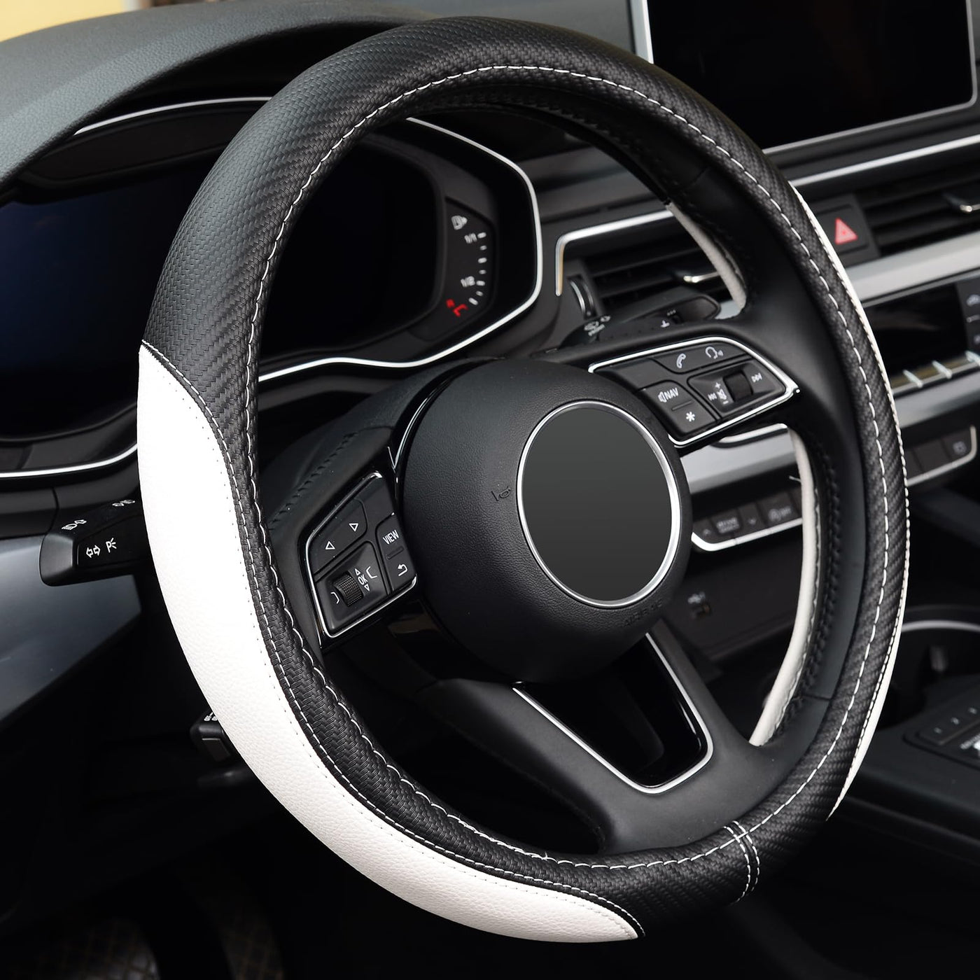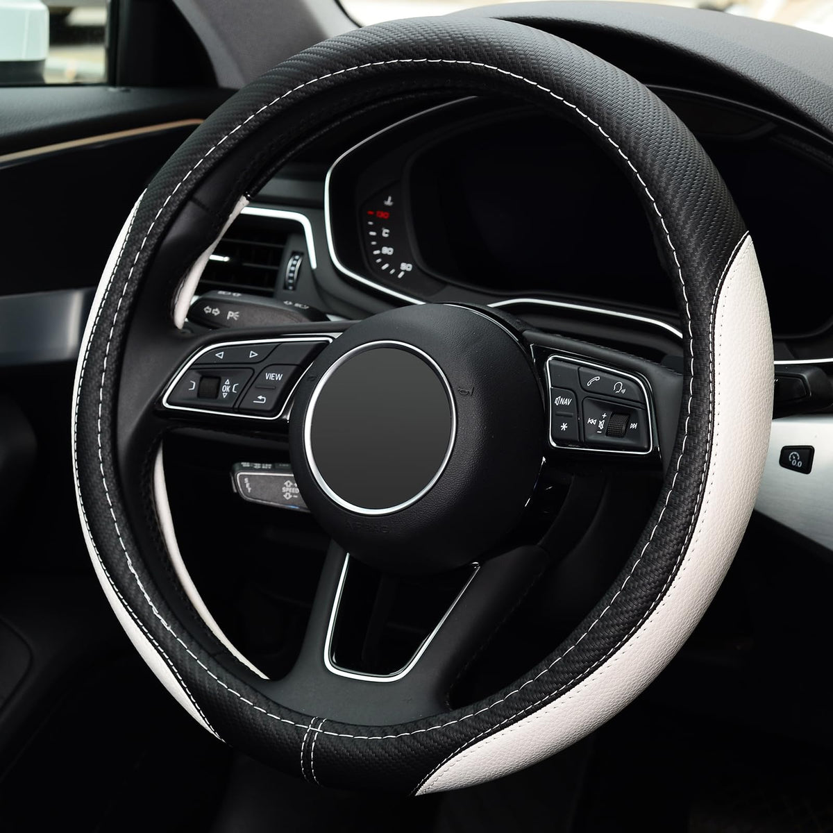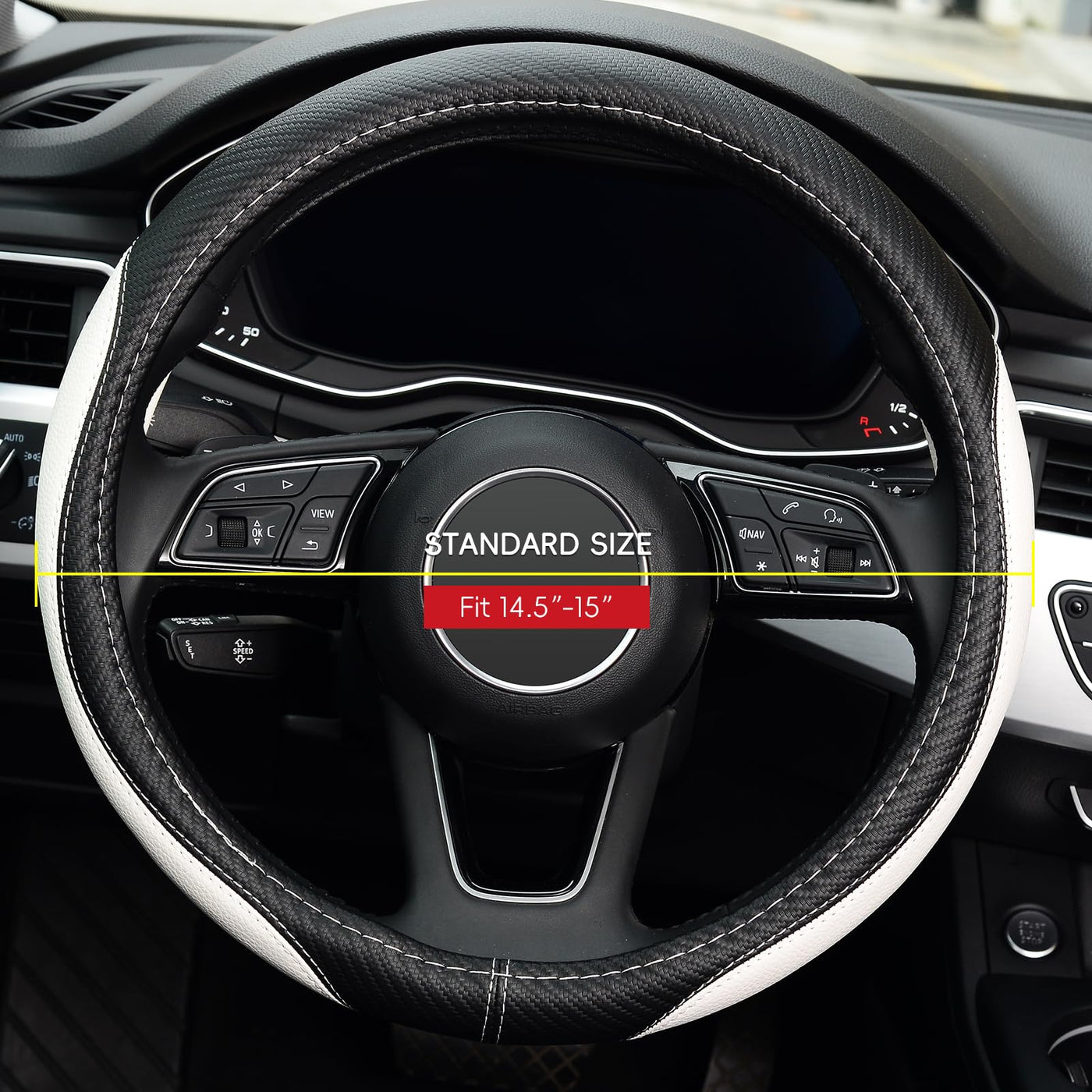Labbyway Microfiber Leather Auto Car Steering Wheel Cover, Universal Fit 15 Inch Anti-Slip Wheel Protector, White