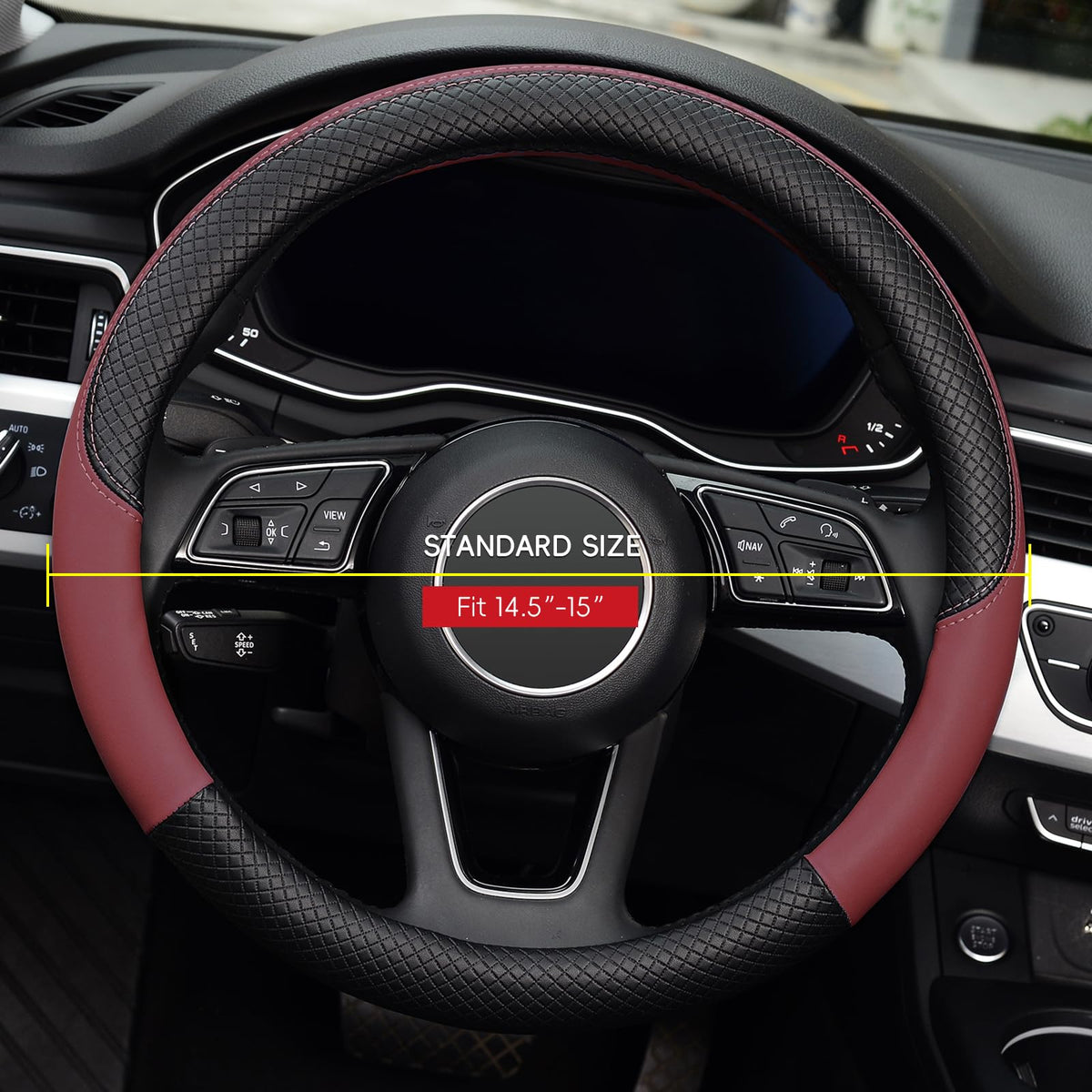 Labbyway Steering Wheel Cover, Universal 15 Inch Microfiber Leather Car Wheel Protecto, Skidproof, Stable, Warm In Winter And Cool In Summer (Claret)