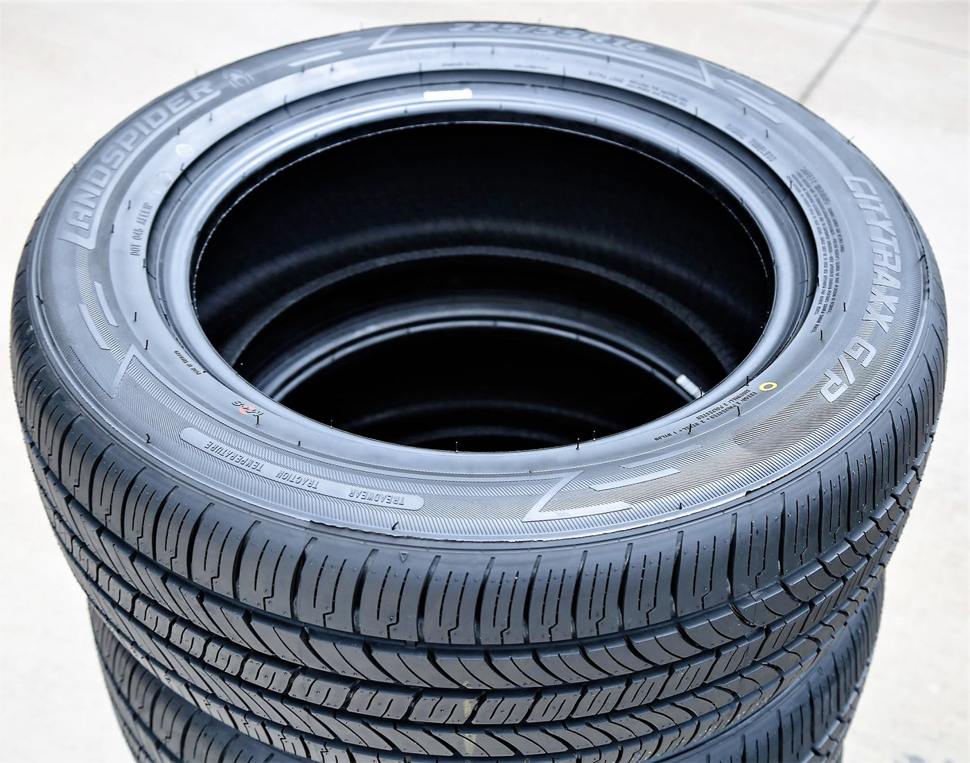 Attention! Due to the size of the tires, Packages might be SEPARATED in the courier facility and not be DELIVERED on the SAME DAY, even though we do ship them together. All tracking information can be checked on courier's website.Landspider Citytraxx G/PThe Landspider Citytraxx G/P is a performance, all season tire manufactured for passenger vehicles and SUVs. The constant surface contact of the ribbed tread design increases steering responsiveness and driving stability. The detailed siping placement upgrades the braking ability, shortening the stopping distance. The all season compound and the detailed tread design boost dry, wet, and winter traction, while the groove placement avoids hydroplaning in wet conditions. The reduced rolling resistance decreases the vehicles fuel intake and CO2 emissions. The Citytraxx G/P promotes a longer tread life, by avoiding premature and irregular wear and tread damage.FeaturesHydroplaning - The circumferential grooves prevent hydroplaning by dispersing water and slush from the footprint on wet roads.Braking Ability - The high-density siping placement reduces the stopping distance by generating friction at the moment of braking.All Season Tire - The all season compound and the detailed tread design boost dry, wet, and winter traction, optimizing driving safety.Fuel Efficiency - The lowered rolling resistance greatly greatly decreases the vehicles fuel consumption and CO2 emissions.Handling - The maintained surface contact of the ribbed tread design enhances steering responsiveness and driving stability at all times.Longer Tread Life - The tread block stiffness and the durable compound upgrade the tread life length by avoiding irregular wear.