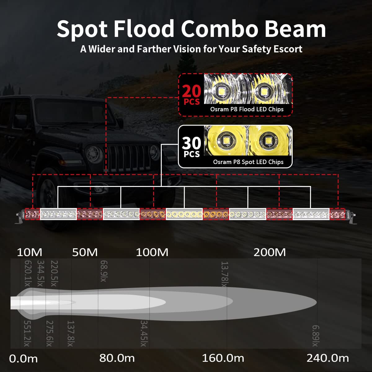 Lasfit 52 Inch Led Light Bar, Ip67 Waterproof Single Row Led Bar, Off Road Driving Light, Spot Flood Beam Light Bar For Wrangler