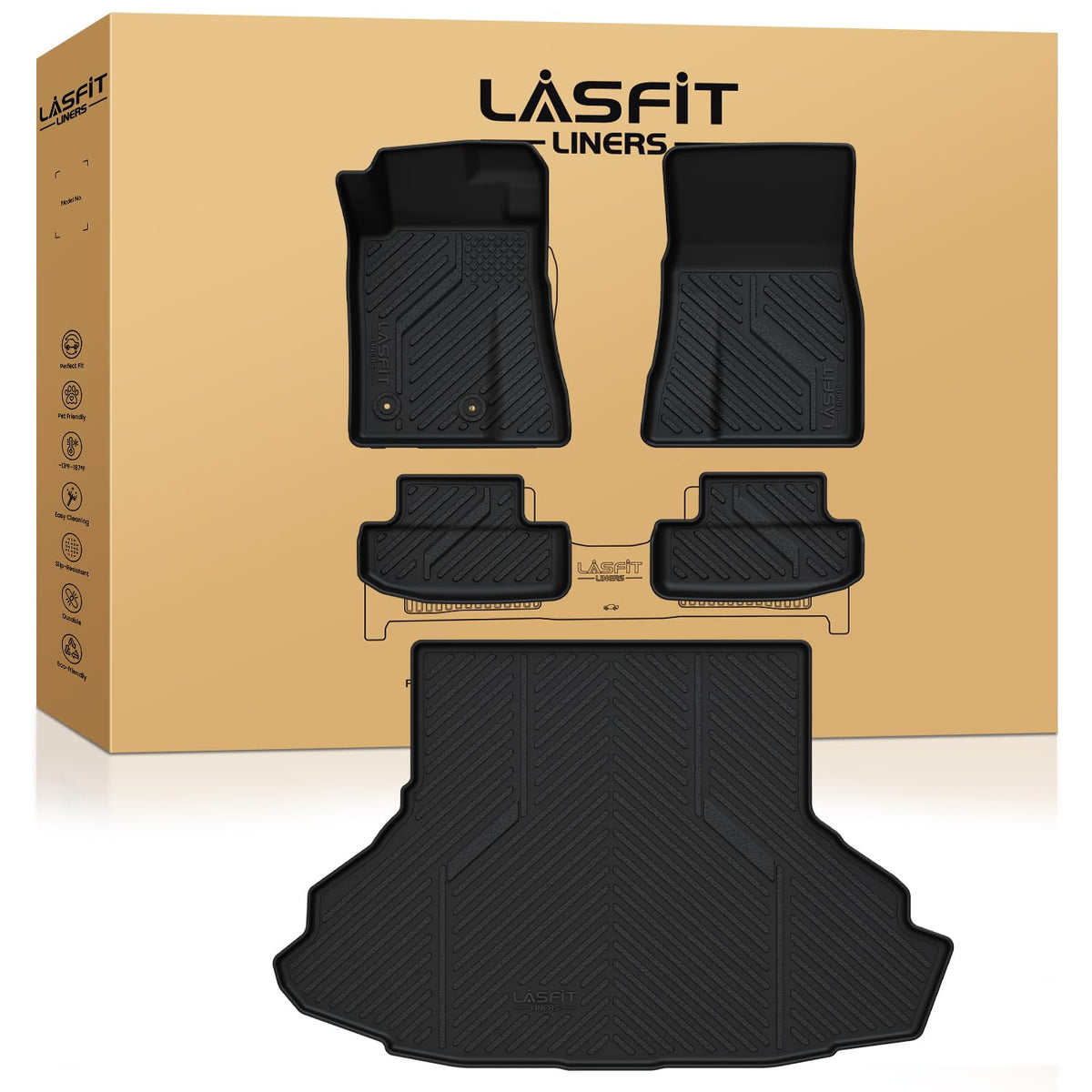 Lasfit Floor Mats And Trunk Mat For Ford Mustang 2015-2025 (Cargo W/O Subwoofer Box) All Weather Protector Tpe Car Floor Liners,