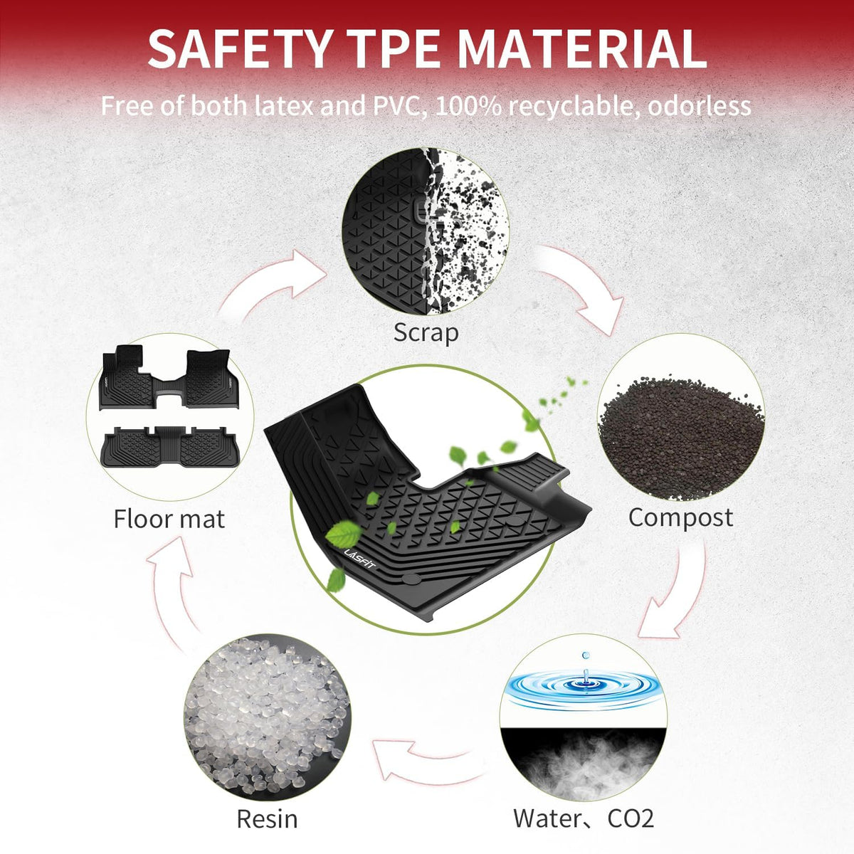 This automotive floor mats is custom fit for BMW IX 2022-2026, Front Row + 2nd Row TPE floor liners. The Car floor mats are suitable for people who like outdoor activities. Outdoor scenes: climbing, hiking, camping, hunting, fishing, surfing, skiing etc.The only thing you will get is the safe & custom fit floor liners. It's good for containing mess from wet or dirty shoes, whatever you step in. Reasons to choose LASFIT Floor Mats: The edge of the floor mat adopts a reinforced design, so that the floor mat fits the contour of the original car carpet more. Remain flexible in extreme weather and is not easily break, deformed, deteriorated or hardened. Easy to install and disassemble, the whole process only takes a few seconds. All seasons and weather full protection. Keep your carpet clean. Easy to Clean and Maintain, Soft and Flex Tough. Safety, Give you the most comfortable feeling.