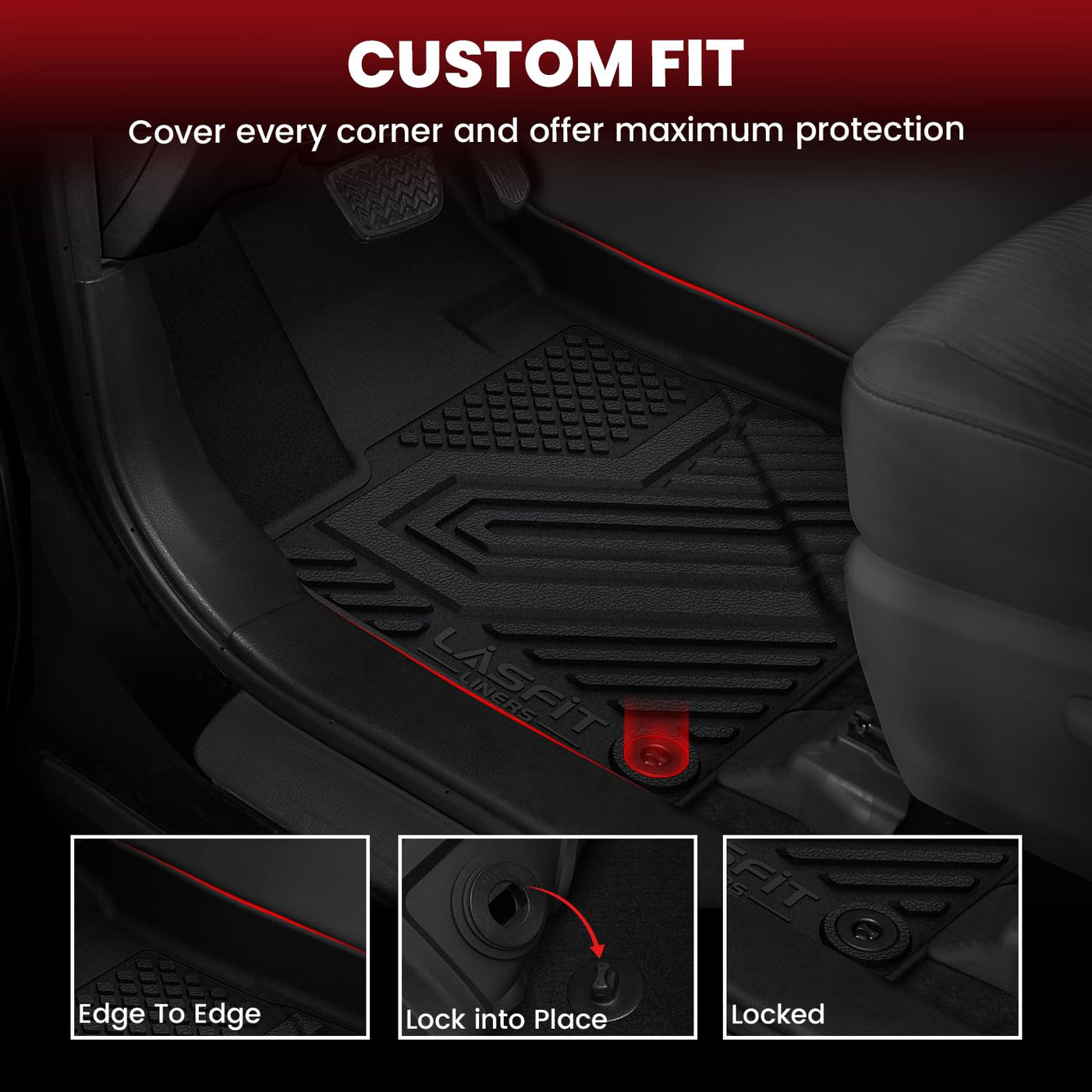 This automotive floor mats is custom fit for Toyota RAV4 2019-2024 2025, Front Row + 2nd Row TPE floor liners. The Car floor mats are suitable for people who like outdoor activities. Outdoor scenes: climbing, hiking, camping, hunting, fishing, surfing, skiing etc.The only thing you will get is the safe & custom fit floor liners. It's good for containing mess from wet or dirty shoes, whatever you step in. Reasons to choose LASFIT Floor Mats: The edge of the floor mat adopts a reinforced design, so that the floor mat fits the contour of the original car carpet more. Remain flexible in extreme weather and is not easily break, deformed, deteriorated or hardened. Easy to install and disassemble, the whole process only takes a few seconds. All seasons and weather full protection. Keep your carpet clean. Easy to Clean and Maintain, Soft and Flex Tough. Safety, Give you the most comfortable feeling.