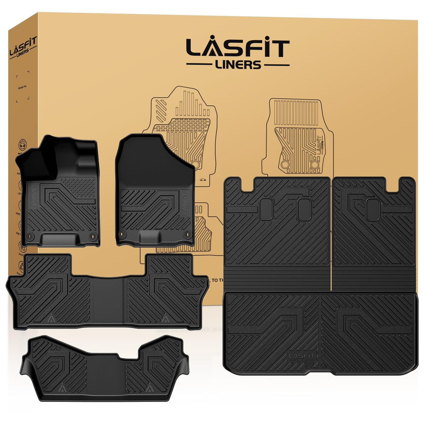 Lasfit Floor Mats & Trunk Mat For Honda Pilot 2016-2022 8 Passenger (No Elite Model), All Weather Tpe Custom Fit Floor Liner Acc