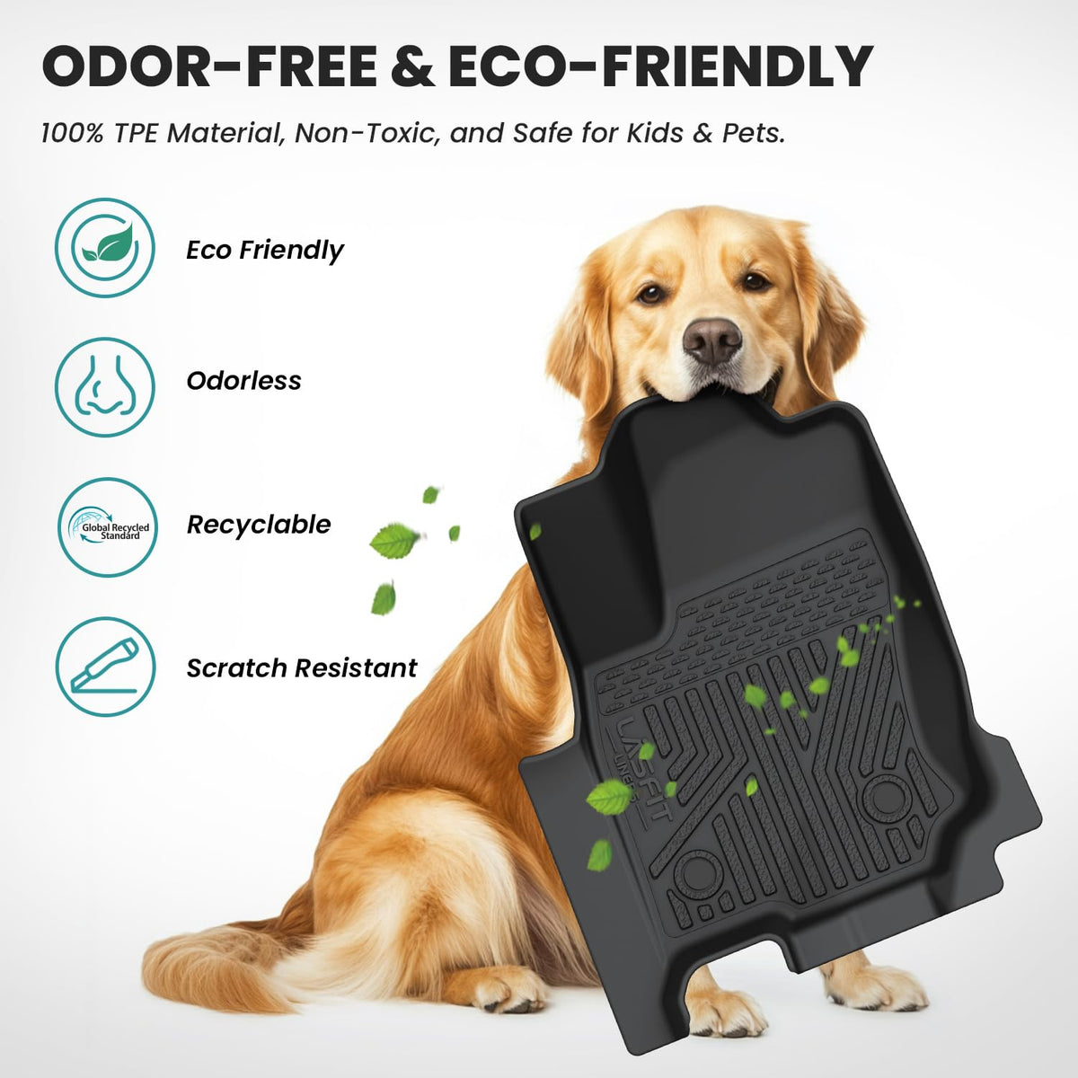 This automotive floor mats is custom fit for Toyota 4Runner 2025, Front Row + 2nd Row TPE floor liners. The Car floor mats are suitable for people who like outdoor activities. Outdoor scenes: climbing, hiking, camping, hunting, fishing, surfing, skiing etc.The only thing you will get is the safe & custom fit 4 runner floor mats for limited/sr5/sr5 premium/trail/trd/trd off-road/trd off-road premium/trd pro/trd sport/venture/nightshade. It's good for containing mess from wet or dirty shoes, whatever you step in. Reasons to choose LASFIT Floor Mats: The edge of the floor mat adopts a reinforced design, so that the floor mat fits the contour of the original car carpet more. Remain flexible in extreme weather and is not easily break, deformed, deteriorated or hardened. Easy to install and disassemble, the whole process only takes a few seconds. All seasons and weather full protection. Keep your carpet clean. Easy to Clean and Maintain, Soft and Flex Tough. Safety, Give you the most comfortable feeling.