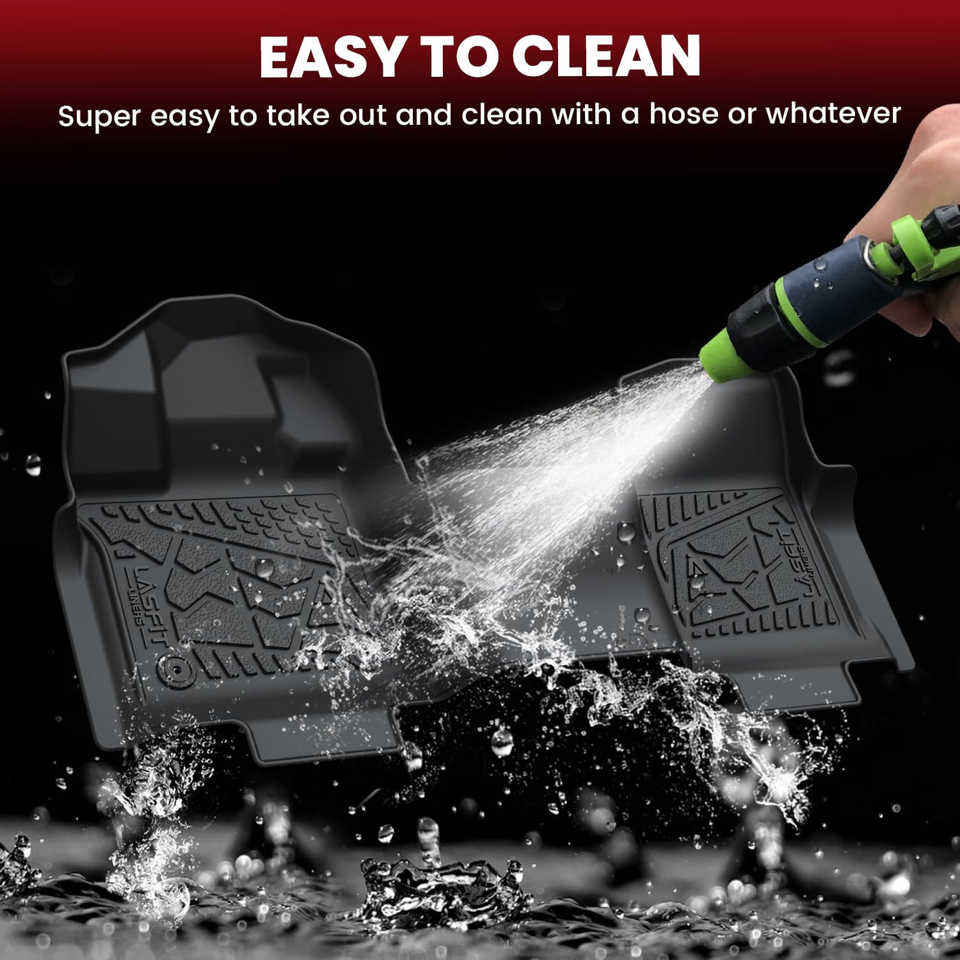 LASFIT LINERS are Injection Molded of excellent quality Thermoplastic Elastomer material, custom fit for Ford F-150 2015 - 2025 Regular Cab Front Row. Full covers the floors of driver, passenger and rear row. These LASFIT car floor mats are the companion for your vehicles. Outdoor scenes: climbing, hiking, camping, hunting, fishing, surfing, skiing etc.The only thing you will get is the safe & custom fit floor liners. It's good for containing mess from wet or dirty shoes, whatever you step in. Reasons to choose LASFIT Floor Mats: The edge of the floor mat adopts a reinforced design, so that the floor mat fits the contour of the original car carpet more. Remain flexible in extreme weather and is not easily break, deformed, deteriorated or hardened. Easy to install and disassemble, the whole process only takes a few seconds. All seasons and weather full protection. Great for keeping your carpets clean. Easy to Clean and Maintain, Soft and Flex Tough. Safety, Give you the most comfortable feeling.
