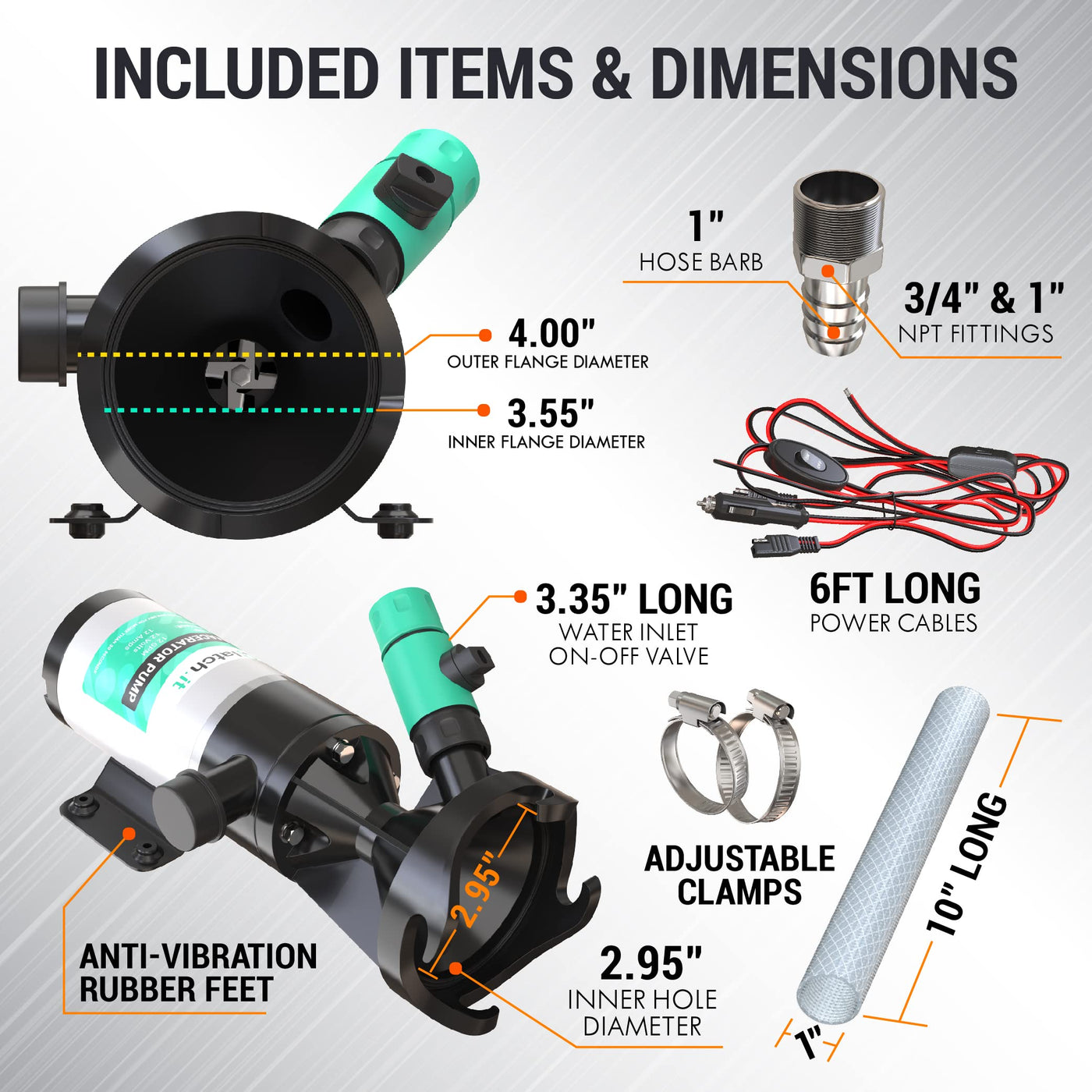 Q: Is the LATCH.IT RV Macerator Pump easy to install?A: Yes, the macerator pump comes as a complete kit with all necessary accessories, including hoses, clamps, and fittings. The quick-release function allows for easy attachment and detachment during use.