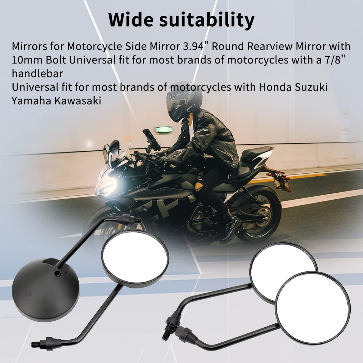 LCGLY 3.94 inches/10mm Round Universal Motorcycle Rearview Mirror Compatible with Honda Suzuki Yamaha Kawasaki, For most brands