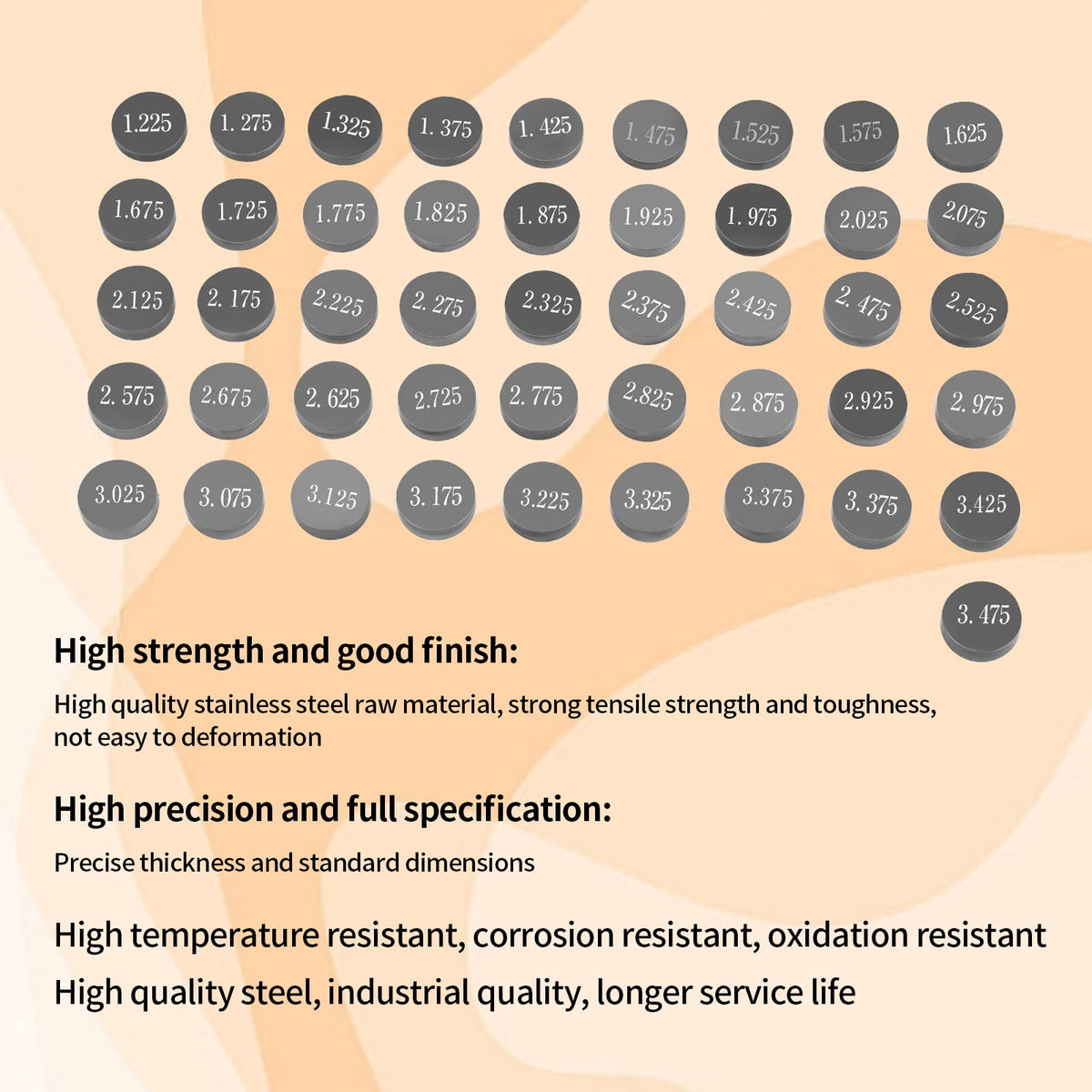 Q: How thick are the shims included in the kit?A: The kit includes shims with thicknesses ranging from 1.20mm to 3.50mm, with 47 different sizes available to meet your specific needs.