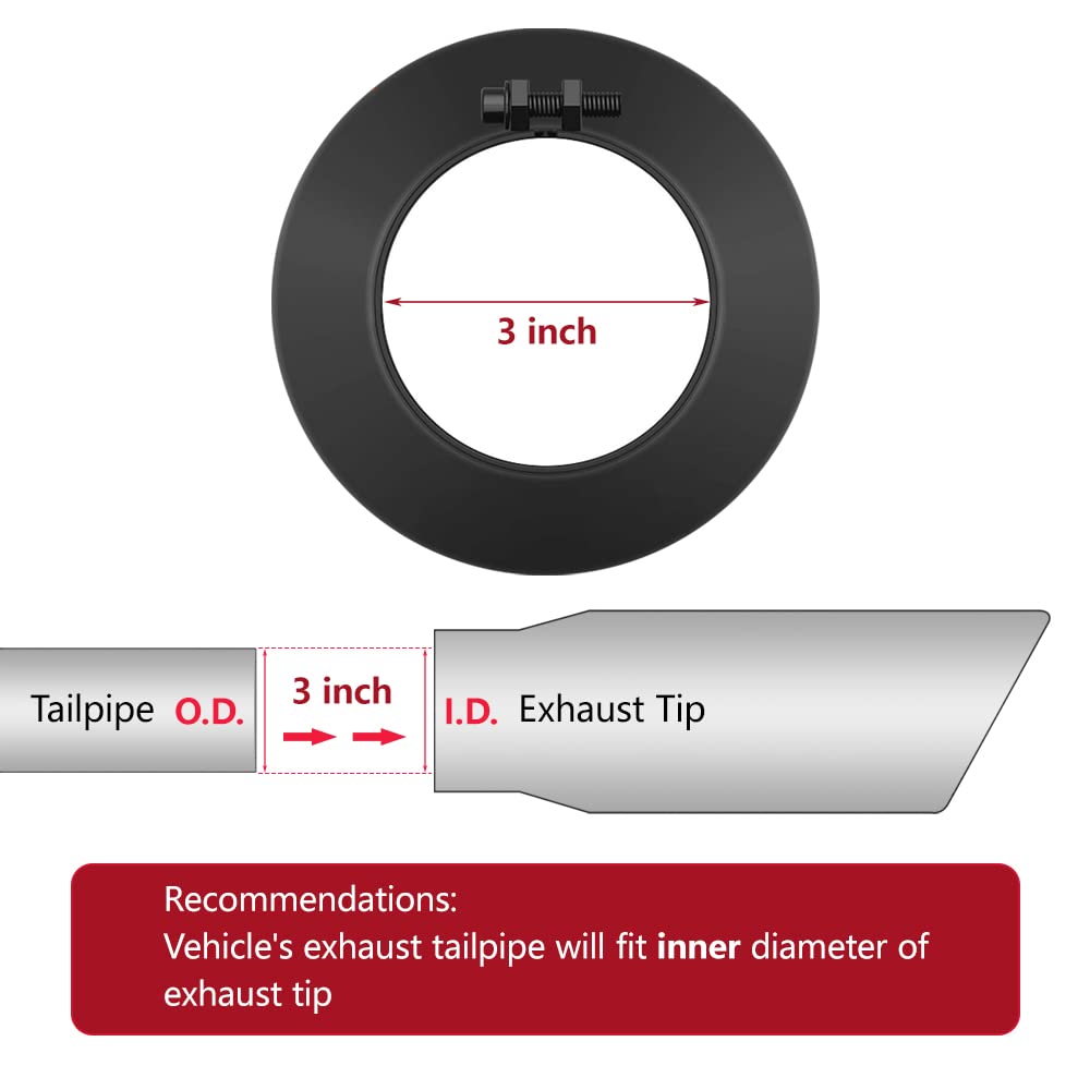Lcgp 3'' Inlet Black Exhaust Tip, 3'' X 4'' X 15'' Universal Bolt On Stainless Steel Diesel Exhaust Tailpipe Tip