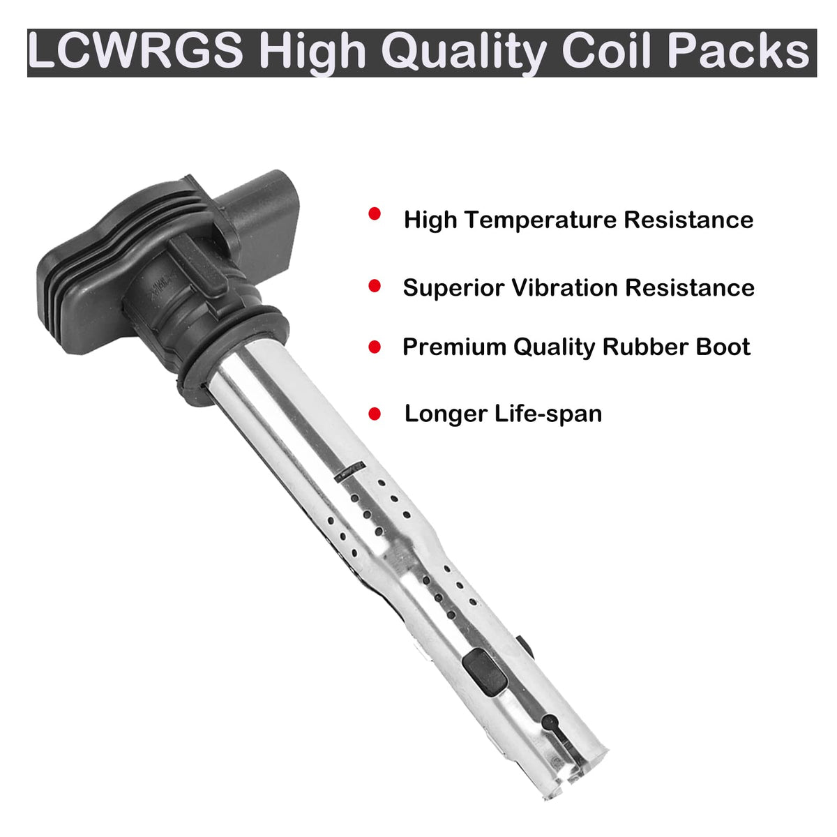 Q: What benefits do LCWRGS Ignition Coils offer compared to other brands?A: LCWRGS Ignition Coils are built to meet or exceed OE specifications, featuring high-quality materials like highly conductive copper wire and high dielectric performance epoxy. This ensures excellent connectivity, durability, and a longer service life compared to many other aftermarket options.
