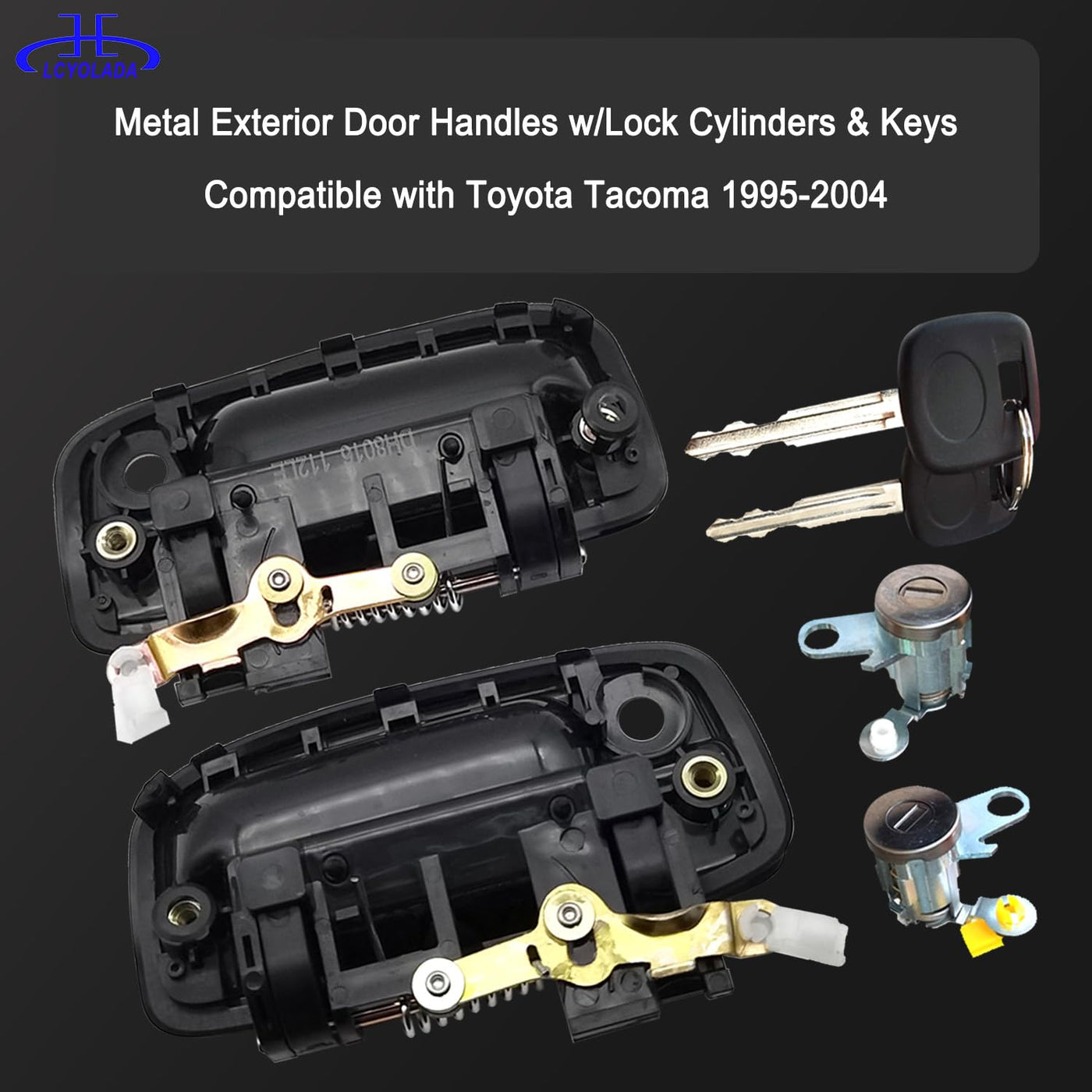 Lcyolada Pair of Exterior Door Handles w/Lock Cylinders & Keys Compatible with 1995-2004 Toyota Tacoma, Front Driver and Passeng