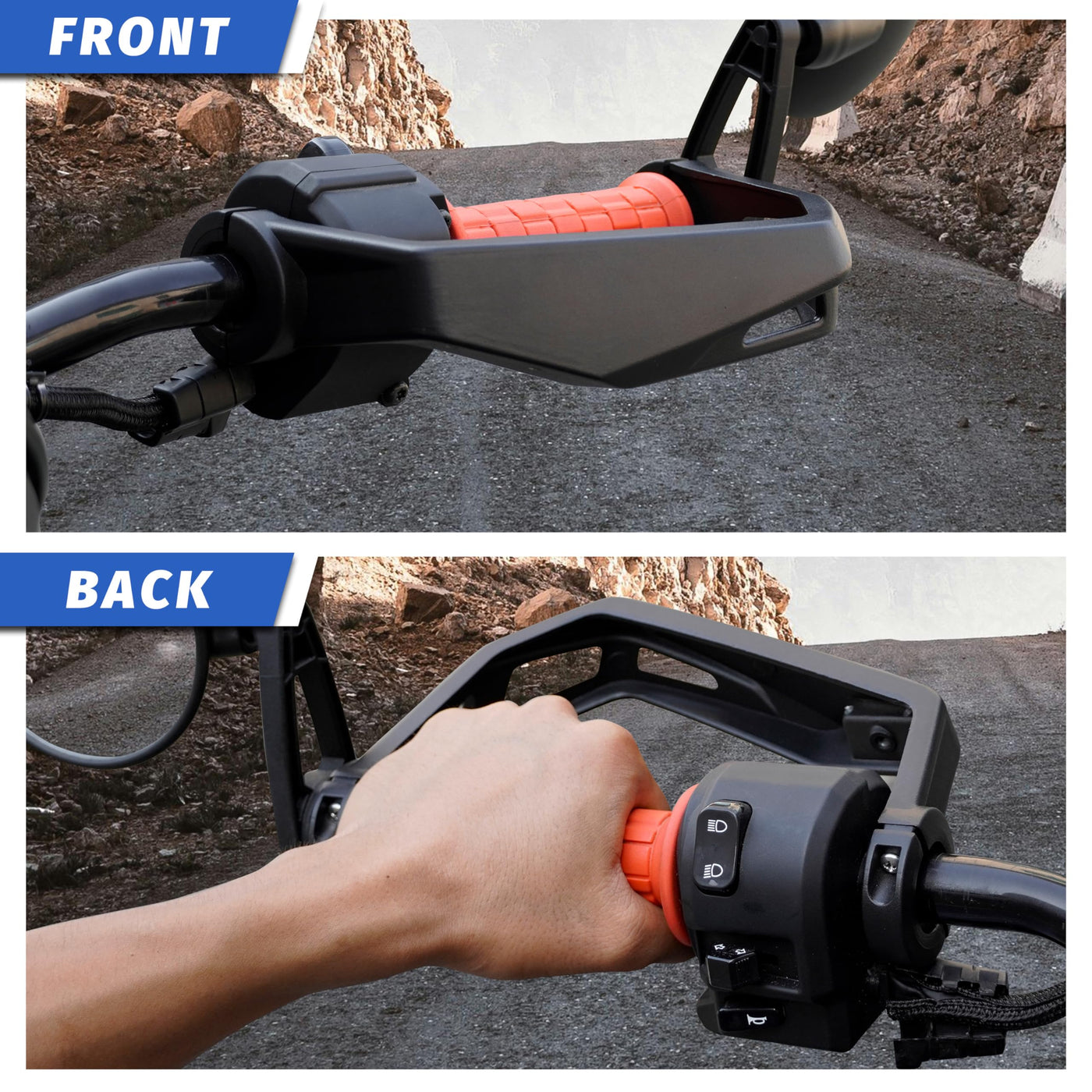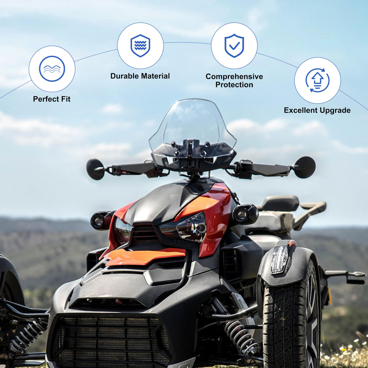 Q: What unique design features do the LDETXY handguards offer?A: The LDETXY handguards feature a unique black matte texture with a black powder coating, which blends seamlessly with the vehicle's aesthetics. This stylish design not only enhances the sporty look of your Can-Am Ryker but also serves as a protective accessory.