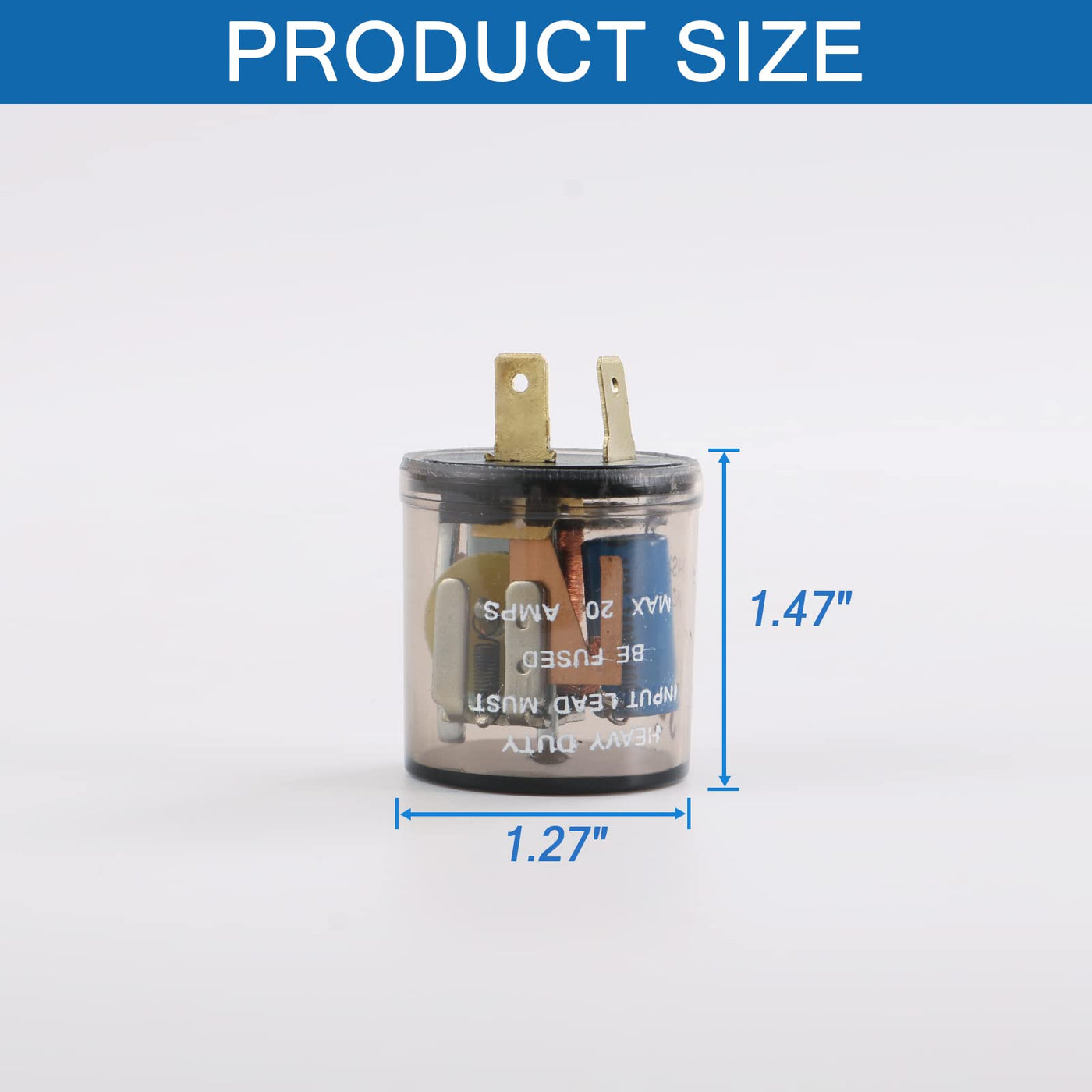 This is a heavy duty 2 pin 12V electronic signal flasher (blinker) relay that is a plug and play design. 2-prong led flasher relay MAX 20 AMPS & Voltage: 12 volts Fit for many cars and universal Package Contents: 4 pcs 2 PIN Prong Turn Signal Flasher Dimensions 2.3 x 1.4 x 1.3 inches Works with regular bulbs. Audible Clicking Noise. Easy Installation, Strong Quality , Extra long lasting life. Works with LED bulbs AND regular bulbs, or a mix. The 2 pin 12 volt round led flasher relay work for Most Automotive/Motorcycle/Bike to fix the rapid flashing turn signal or prevent weak or no flashing blinking issues. Our no load digital flasher relay Works with regular bulbs, and some LEDs These flashers retain the reliability of an flasher along with staying extra cool, consuming very little power and extra long lasting life. The flasher will resolve the problem with hyper-flashing or no-flashing when you replace your stock incandescent bulbs with LED bulbs. Handles up to 20 Amp, so no worries when towing a trailer that has non-LED bulbs (many cheap LED flashers will burn out if you use regular bulbs) Audible Clicking Noise. Constant Flash Rate, regardless of the type or number of bulbs. The flasher will resolve the problem with hyper-flashing or no-flashing. Constant Flash Rate ,Fixed blinker speed and great for tail lights, For upgrading to tail lamps of turn signal lights