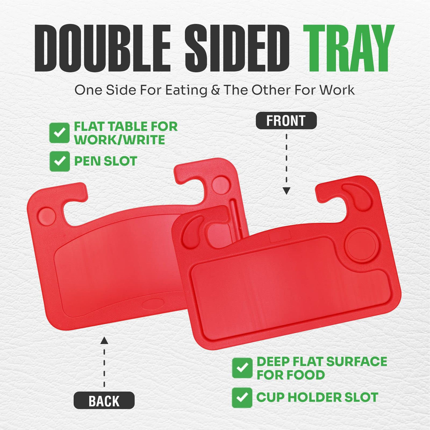 ? Easy and Convenient - This multipurpose Hook-On Steering Wheel Tray is the perfect accessory to have in your car for a quick snack, breakfast, or to create a small office while traveling. The Car Tray is slim, lightweight, and takes up almost no space when not needed. Just store it in the back seat pocket. Easy and convenient to use.