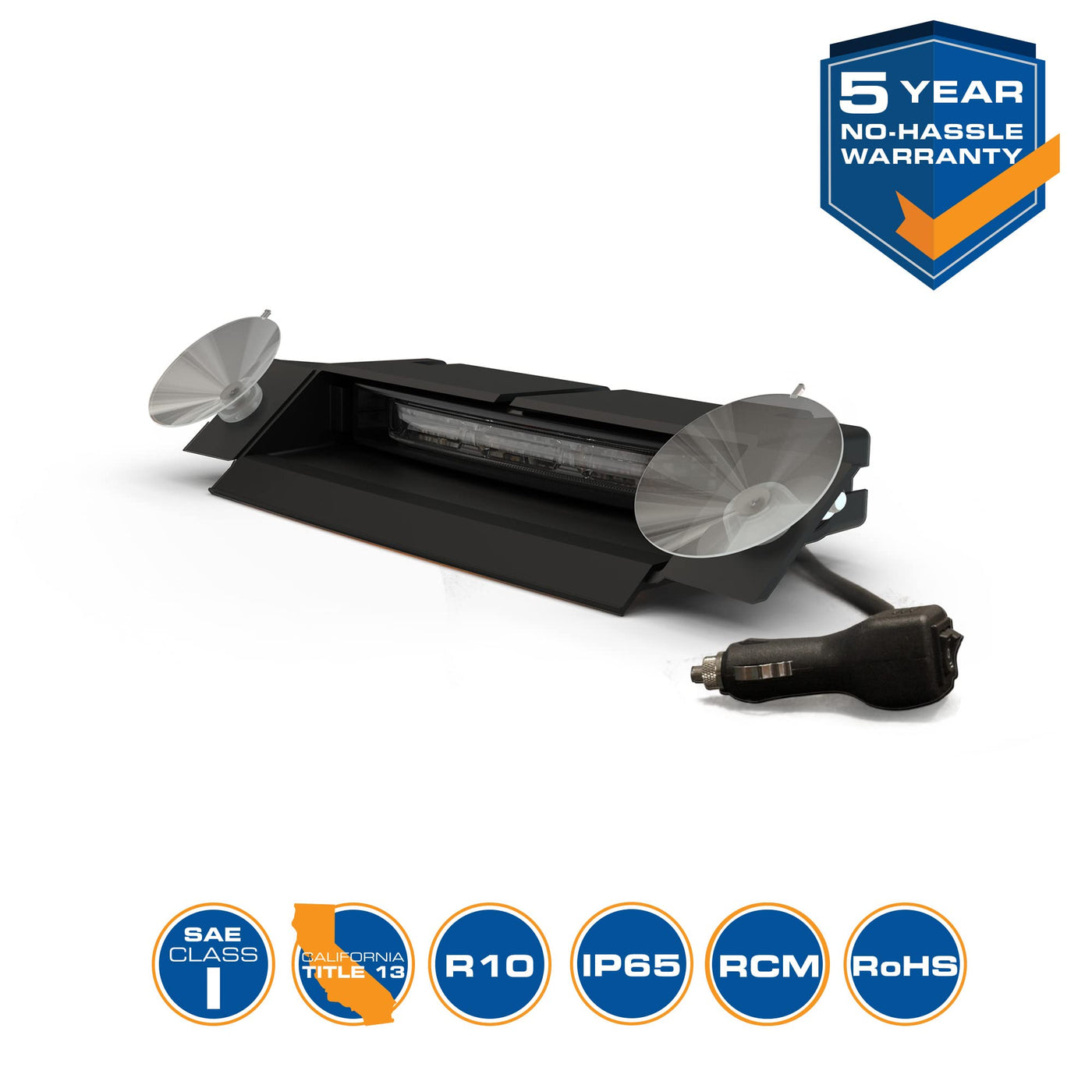 Eccos Low-Profile Ed5051Vdl1 Deck, Dash And Visor Light Delivers Discreet Warning Wherever An Interior Light Is Needed In A Work Truck Or Any Fleet Vehicle. Permanently Or Temporarily Mount The Warning Light With Included Brackets Using Suction Cups, Tape Or Screws. The Dual-Color Led Lightheads Are Available In Combinations Of White And Amber, Red Or Blue Colors, Which Are Capable Of Producing 36 Flash Patterns Including Steady-Burn. The Cigarette Plug Adapter Also Includes A Simple Two-Button Controller. The Removable Shroud Prevents Unwanted Flash Back From The Windshield.