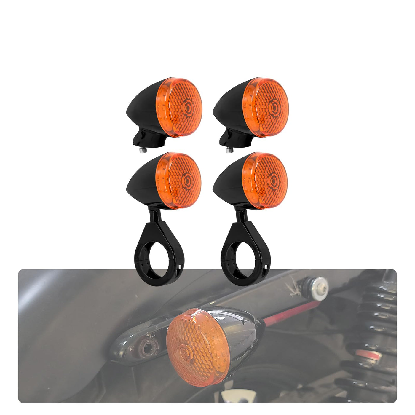 LED Turn Signal Light Indicator Blinker 39mm 41mm Fork Clamp Front Rear Fit For Harley Sportster XL 1200 883 (Black Orange)