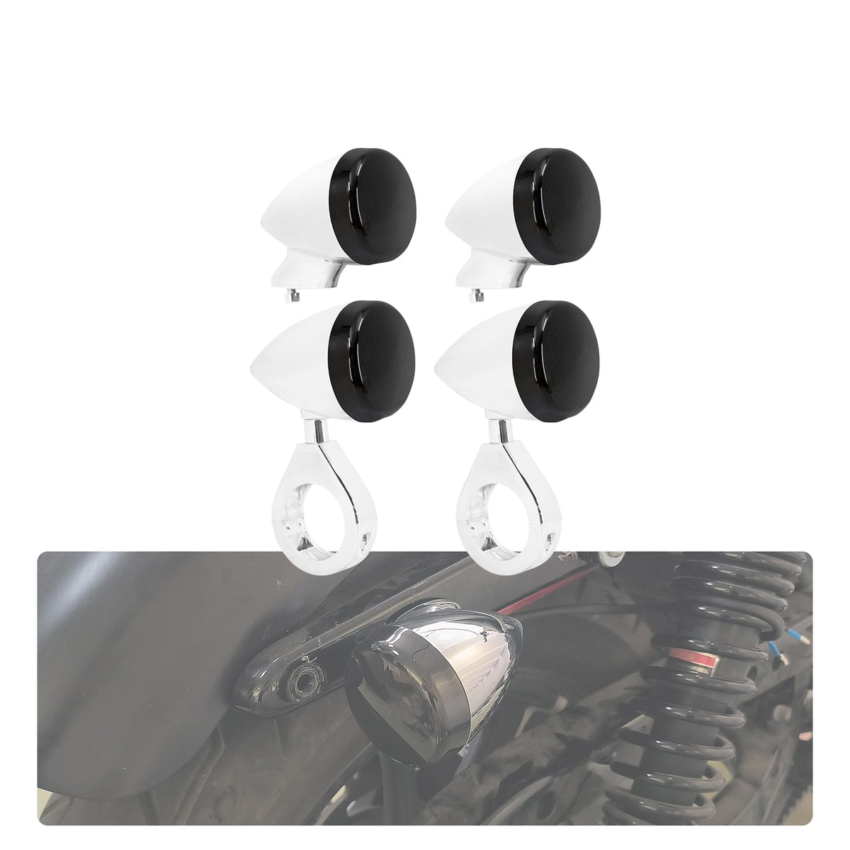 LED Turn Signal Light Indicator Blinker 39mm 41mm Fork Clamp Front Rear Fit For Harley Sportster XL 1200 883 (Chrome Black)