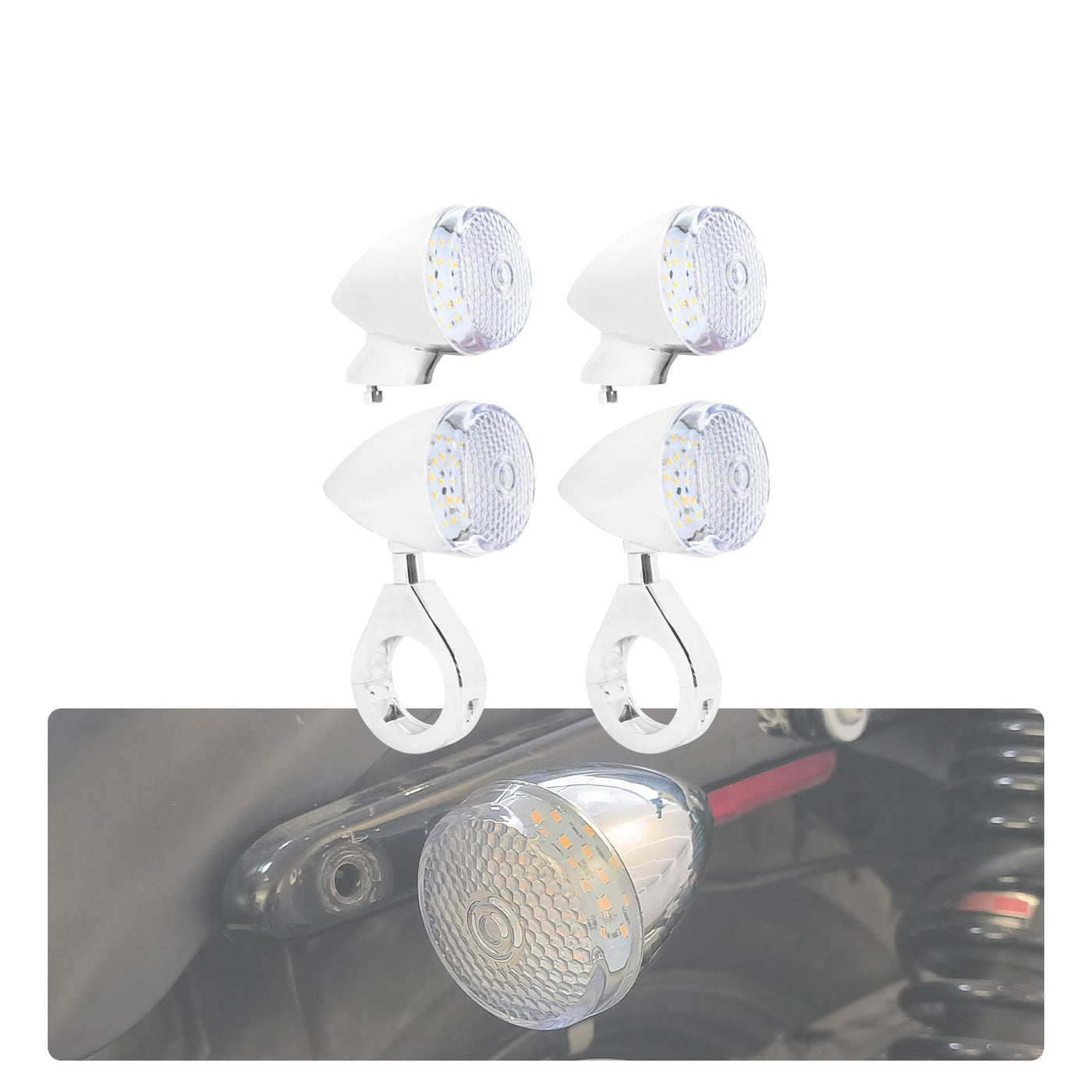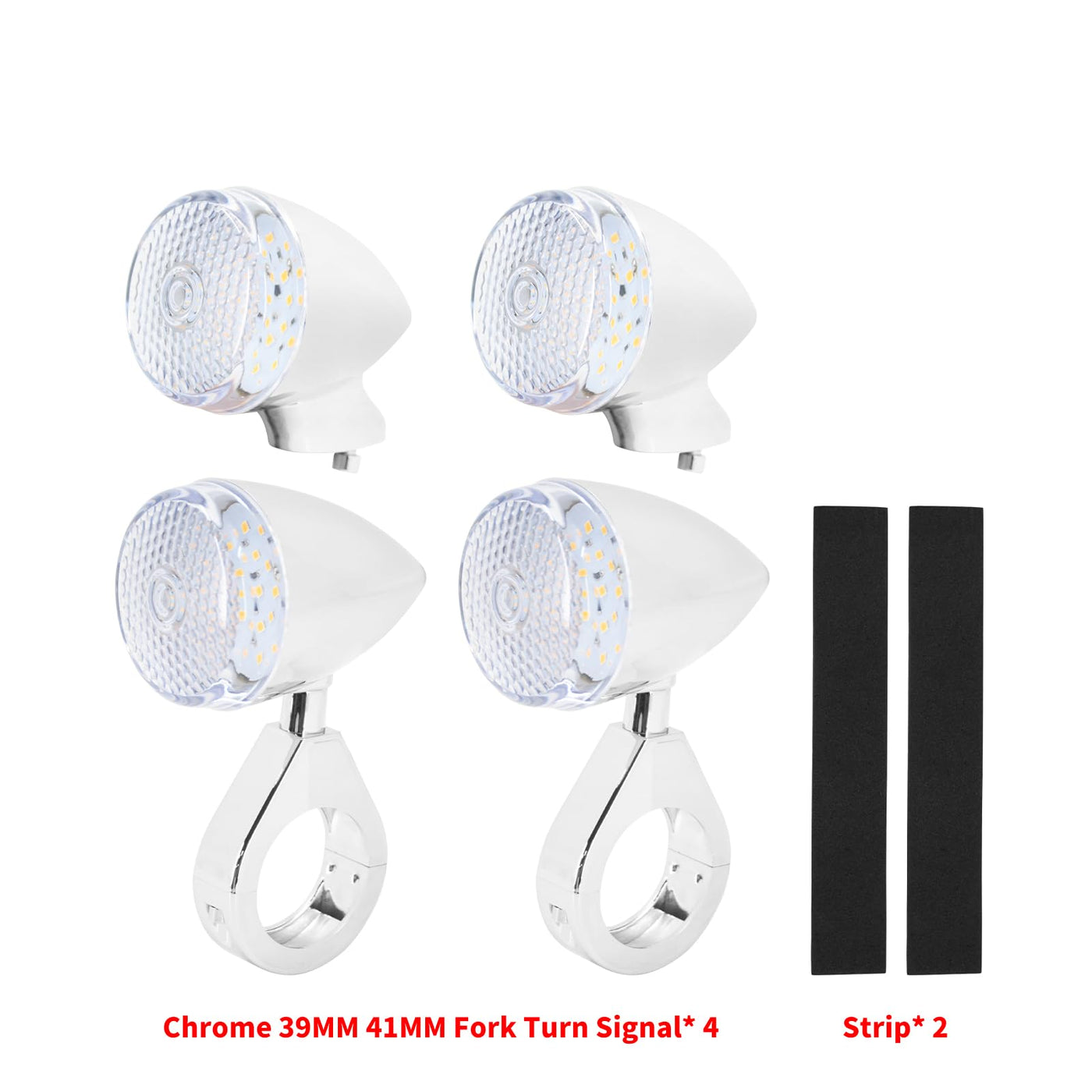 LED Turn Signal Light Indicator Blinker 39mm 41mm Fork Clamp Front Rear Fit For Harley Sportster XL 1200 883 (Chrome Clear)