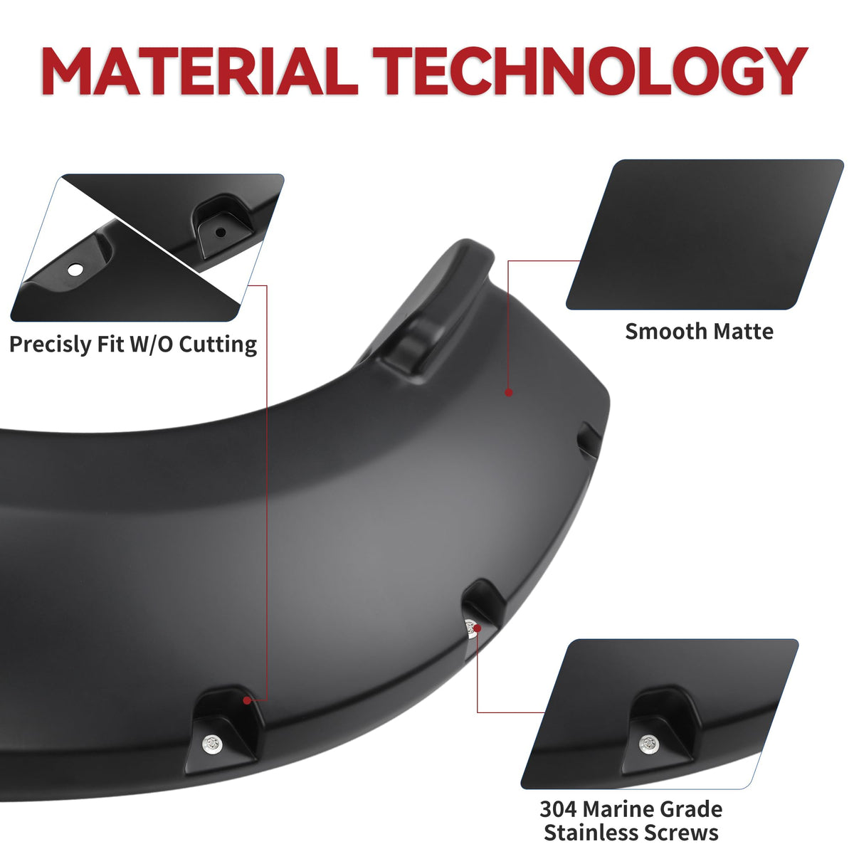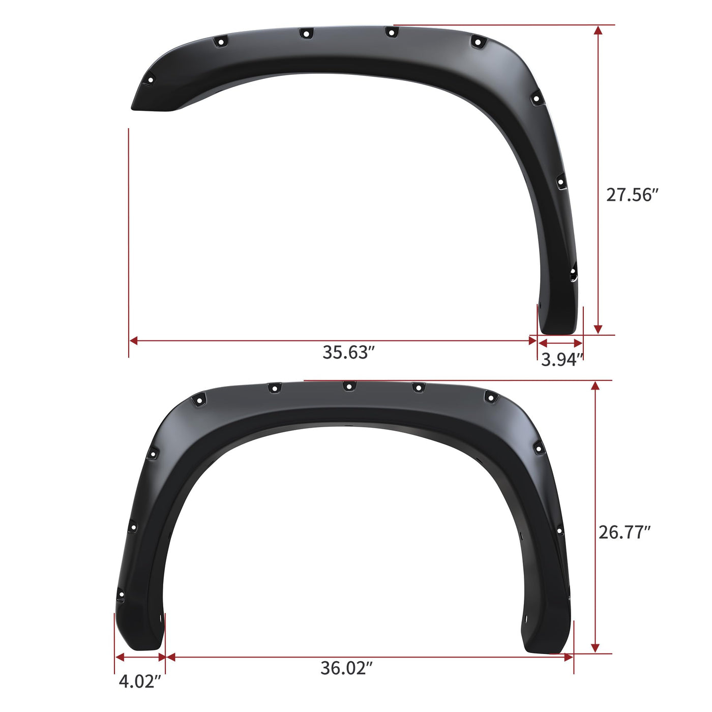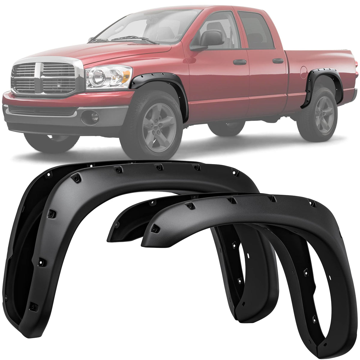 COMPATIBILITY - Compatible with 2002-2008 Dodge Ram 1500 / 2003-2009 Dodge Ram 2500 3500 (fleetside models ONLY); Each fender flare is designed for a specific model, please check your vehicle's Year, Make and Model before purchasing. | PERFORMANCE - FOCUSED MATERIALS - Premium-grade PP material has undergone rigorous durability trials. It will resist deformation, shrinkage and cracking even in the most extreme of climates. | UV PROTECTION - Made of flexible UV-treated high-impact thermoplastic with a smooth black finish. Fender Flares for Dodge Ram can also be painted at any time according to your preferences. | EASY TO INSTALL - No drilling required during installation. Installation manual and necessary mounting hardware kit are included in the package. | EXCELLENT OFF - ROAD COMPANION: Fender guards completely protects your vehicle and paint from mud, rocks, sticks and other airborne debris.