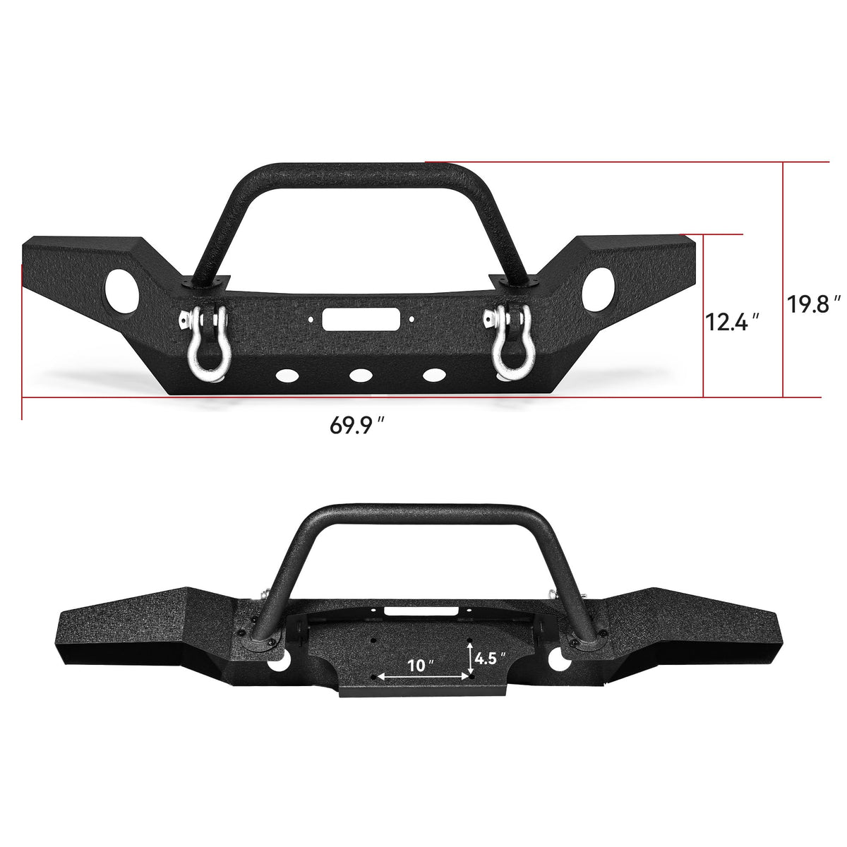 ?Fitment?This Front& Rear Bumper Compatible with all 2007-2018 Jeep Wrangler JK and JK Unlimited models, including 2-door and 4-door models | ?Heavy steel for Maximum Protection?Features powerful 5/32-inch steel to protect your vehicle in harsh off-road environments | ?Shackle Mount and D-rings?Two solid D-ring shackle mounts are welded onto the front bumper for additional strength. Total capacity is 9000 lbs. Built-in winch plate has weight capacity of up to 12,000 lbs (winch not included). Offers a great place to mount a winch and efficient vehicle recovery.Two solid D-ring shackle mounts are welded onto the rear bumper for additional strength. Total capacity is 9000 lbs. with the two 4.75 Ton D-Rings. A 2'' receiver hitch for towing included | ?Corrosion Resistant Finish?E-coat and premium textured-black powder coating grant long-lasting corrosion resistance | ?Simple Bolt-on Installation?Specially engineered to be a direct bolt-on detail for trail headed vehicles. As a direct replacement, this Rear Bumper uses all factory mounting points and requires no additional cutting, welding, or fabrication. The order will be divided into 2 packages for distribution.