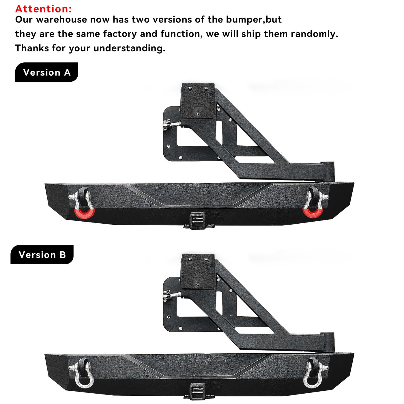 Ledkingdomus Rear Bumper With Tire Carrier And 2'' Hitch Receiver Compatible With 07-18 Jeep Wrangler Jk Jku Rubicon Sahara Spor
