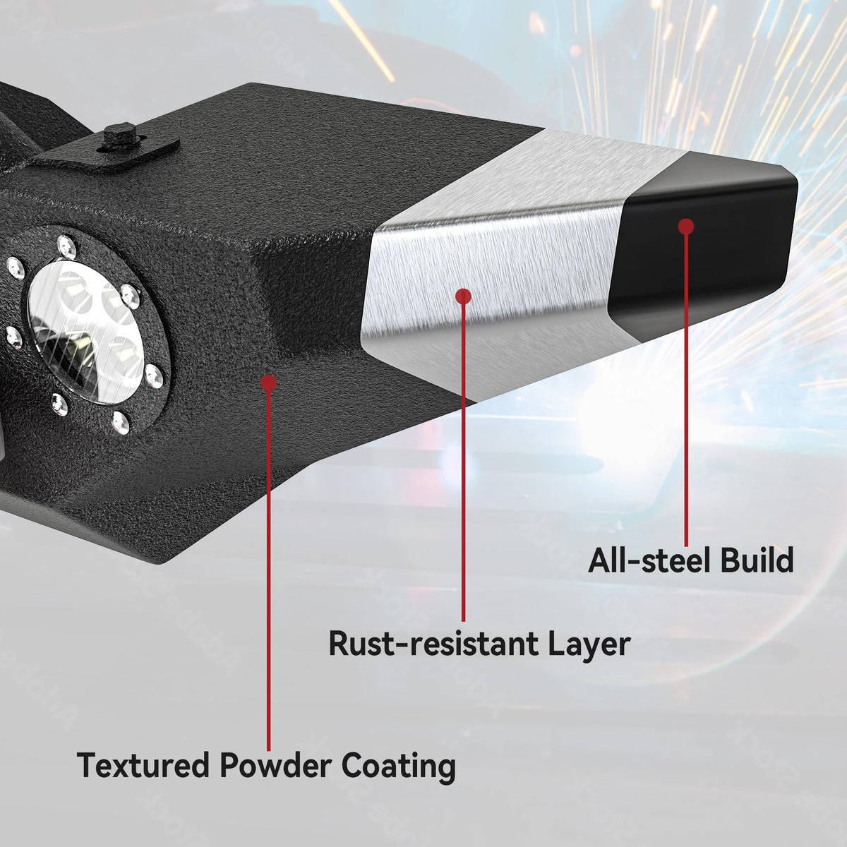 ?Perfect Fitment?The bumper Compatible with 1987-2006 Jeep Wrangler YJ and TJ All models. Simple installation with no drilling or cutting required. | ?LED Accent Lighting?The HD Bumper has 2 built-in LED Lights around the D-ring mounts for a stylish look. These LED accents also help you ''see and be seen'' even on the darkest trails for additional safety. Please note: you may need a separate set of wiring harness. | ?Heavy Duty Construction?The bumpers are manufactured with durable 5/32'' steel sheet and 2''X0.120'' steel tubing. | ?Shackle Mount and D-rings?Two solid D-ring shackle mounts are welded onto the front bumper for additional strength. Total capacity is 9000 lbs. with the two 4.75 Ton D-Rings. Built-in winch plate has weight capacity ofup to 12,000 lbs (winch not included). Offers a great place to mount a winch and efficient vehicle recovery. | ?Corrosion Resistance Finish?E-coat and premium textured-black powder coating grant long-lasting corrosion resistance.