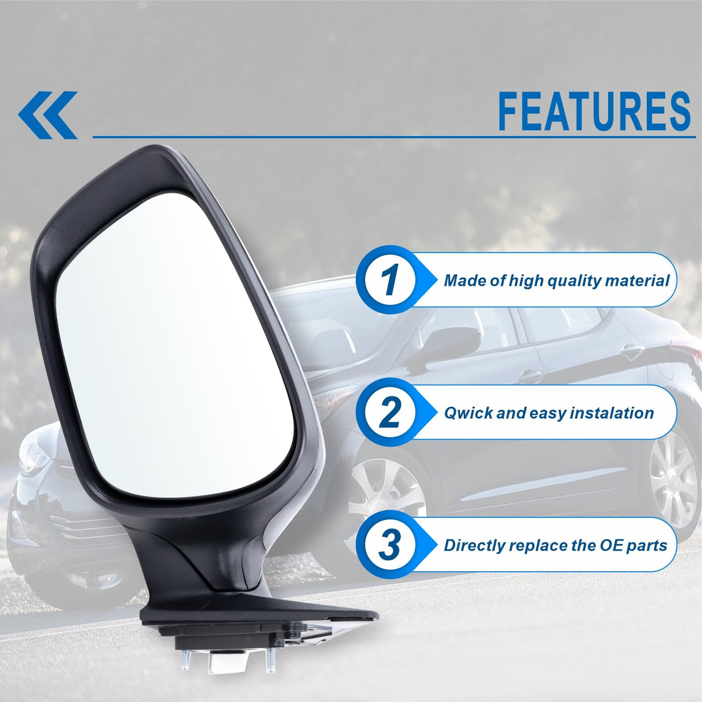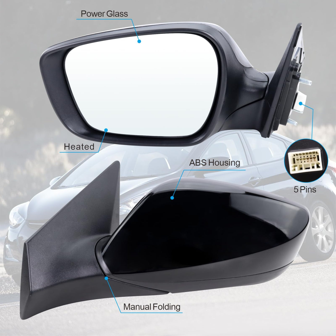 Left Driver Side Mirror Compatible With 2011 2012 2013 Hyundai Elantra With Manual folding Power Glass Heated Black Replace#HY13