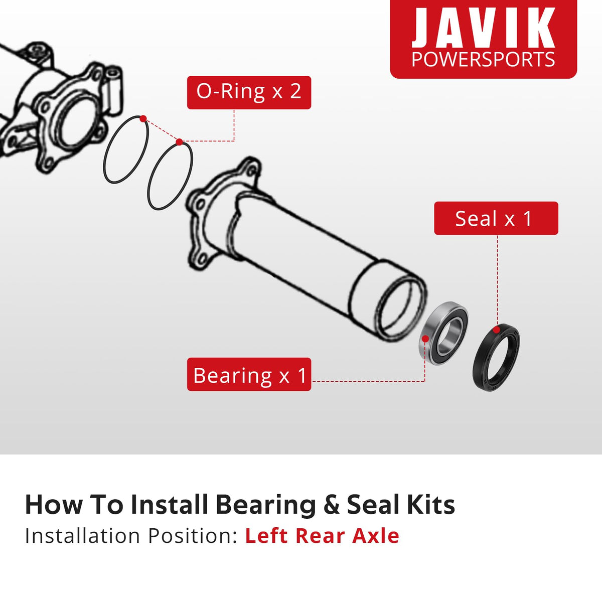 Q: What is included in the package of the left rear axle wheel bearing and seal?A: The package includes one bearing, one seal, and two O-rings, providing a complete accessory set for your maintenance needs.