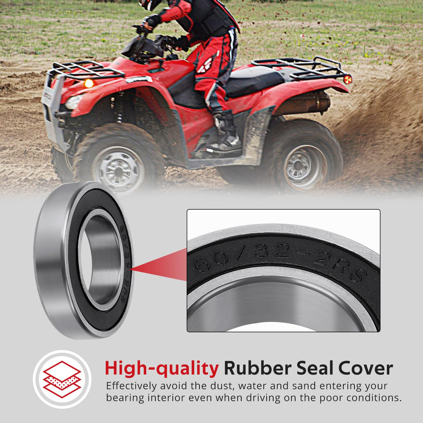Q: What materials are used in the construction of this bearing and seal?A: The bearing is made of long-lasting steel, while the seals and O-ring kits are constructed from durable rubber, ensuring better protection against harsh environments like dirt, mud, and sand.