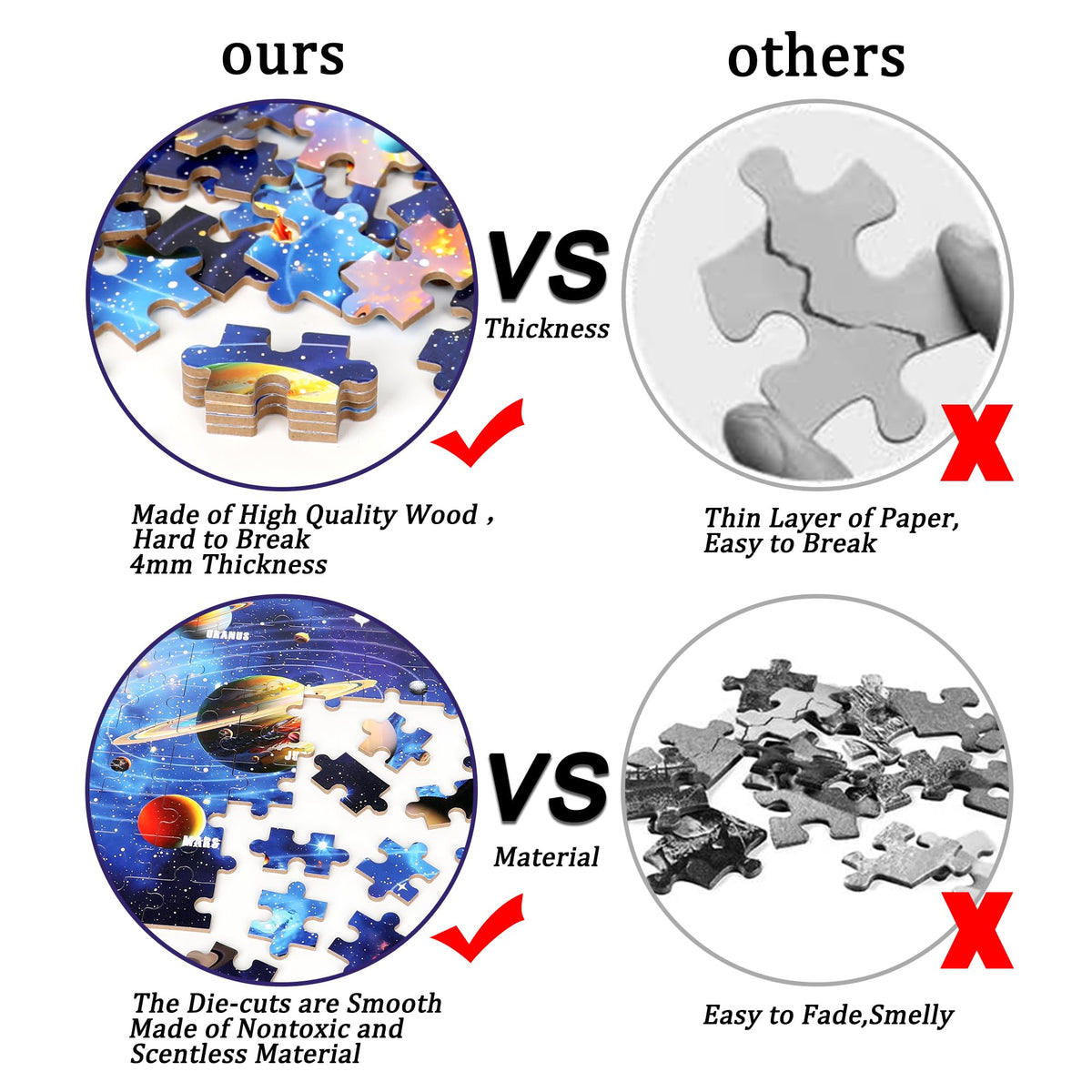 Brand Introduction: We have been specialized in making jigsaw puzzles for several years, specifically for the healthy growth of children, to give children the best toys to cultivate their patience, care, perseverance, intelligence, insight, thinking ability and so on.About Company:We always put the concept of good faith in the first place, we sell to any customer of goods are 100% new, directly from the warehouse to the customer's hand.About Product Material:For puzzles, it can be wood or paper, and wooden puzzles are better preserved. There are many materials used in paper puzzles, and the best puzzle paper is blue core paper. Our puzzles are made of blue core puzzles. All ingredients of blue core paper are tree pulp and protect the health of children.About After-sales Service:If you find any quality problems within one week after receiving our products, please contact us in time. We will solve the problem in a satisfactory manner within 24 hours. About Product Promotions: We often do product updates and promotions at random. Just add our products to the shopping cart and you'll get what you want.