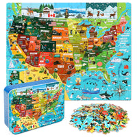 Lelemon Usa Map Jigsaw Puzzles In A Metal Box 100 Pieces Usa Map Jigsaw Puzzle For Kids Ages 4-8 Children Learning Educational P