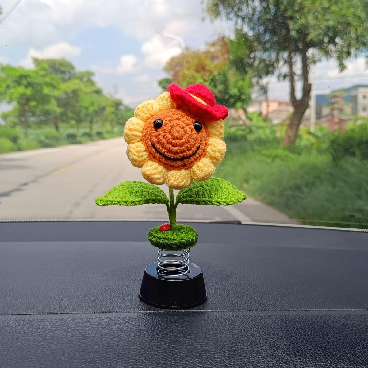 Levvohd Handmade Crochet Sunflower Car Dashboard Decorations Gifts For Women, Cute Sun Flower Hippie Car Bobblehead Dashboard De