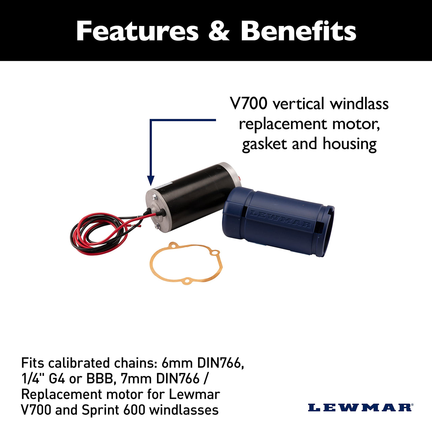 Lewmar Motor Kit, Fits Calibrated Chains: 6Mm Din766, 1/4'' G4 Or Bbb, 7Mm Din766 / Replacement Motor For V700/Sprint 600 Windla