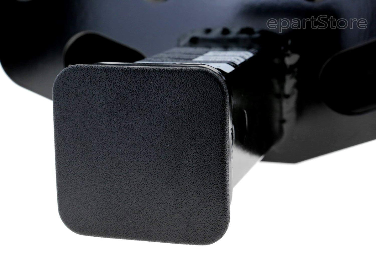 Q: What material is the trailer hitch cover made of?A: The trailer hitch cover is manufactured from durable black rubber, providing resilience against the elements.