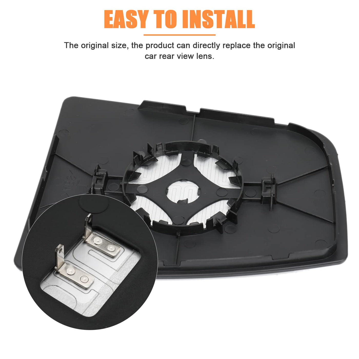 Q: How do I install the heated mirror glass?A: To install the heated mirror glass, unplug the wiring harness from your existing backing plate and plug it into the new backing plate before installation. Ensure a proper fit to maintain functionality.