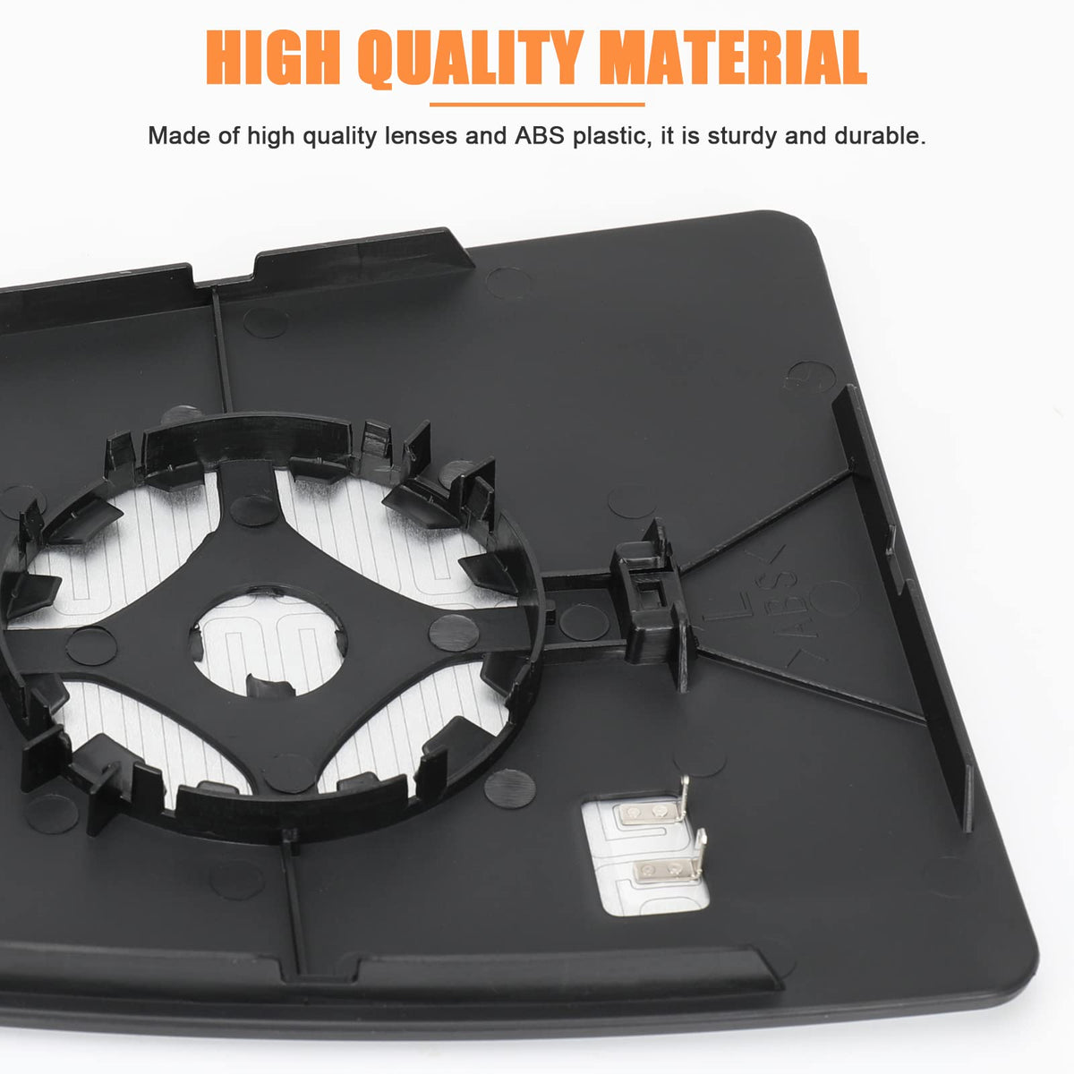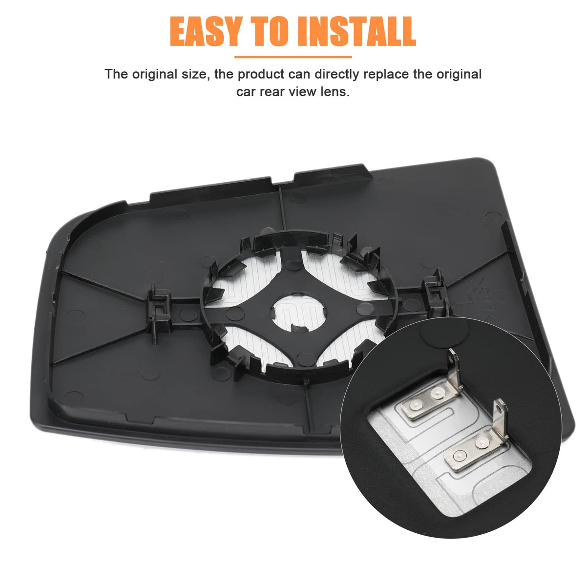 Q: How do I install the heated mirror glass?A: To install the heated mirror glass, unplug the wiring harness from your existing backing plate and plug it into the new backing plate before installation. Make sure to follow the installation instructions carefully for best results.
