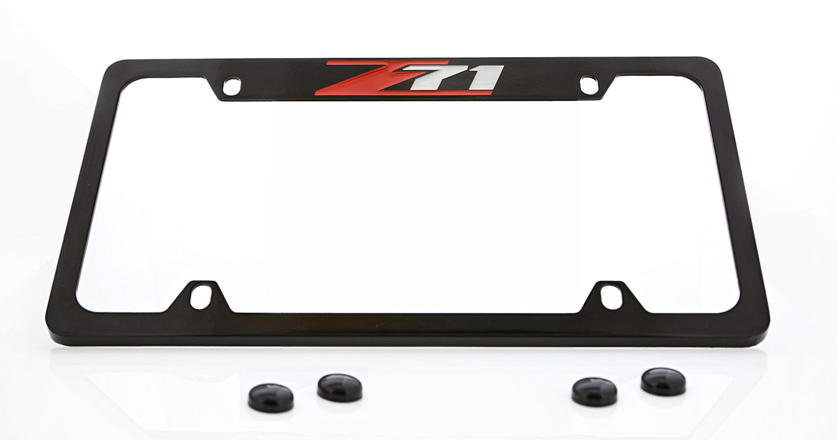 Q: Does the frame come with installation accessories?A: Yes, the Chevrolet Z71 License Plate Frame comes with matching black screw cap covers for easy installation and a polished look.