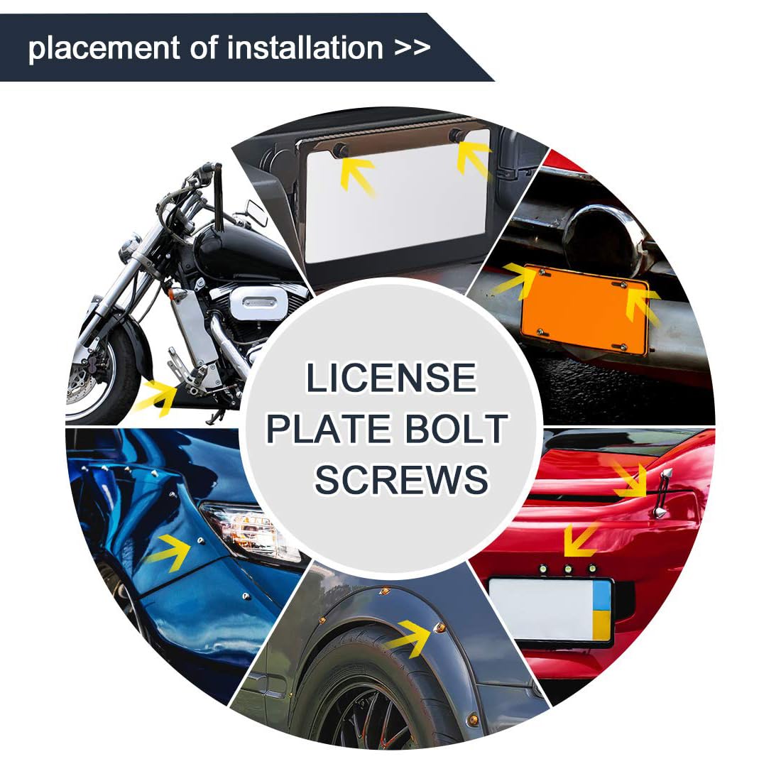 DescriptionGreat replacement for the old, broken bolts/screws in both the front and back license plates, fender, bumper or other parts you like. Easy to apply, style accessories for All cars, motorcycle and some trucks. These fasteners designed to deter removal of a license plate. Throw the original bad bolts/screws of the license plate frame and install our beauty. Stars shape design shows the beauty characteristic, prefect to decorate your car. Note: please check the size of screw on your need before buying.
