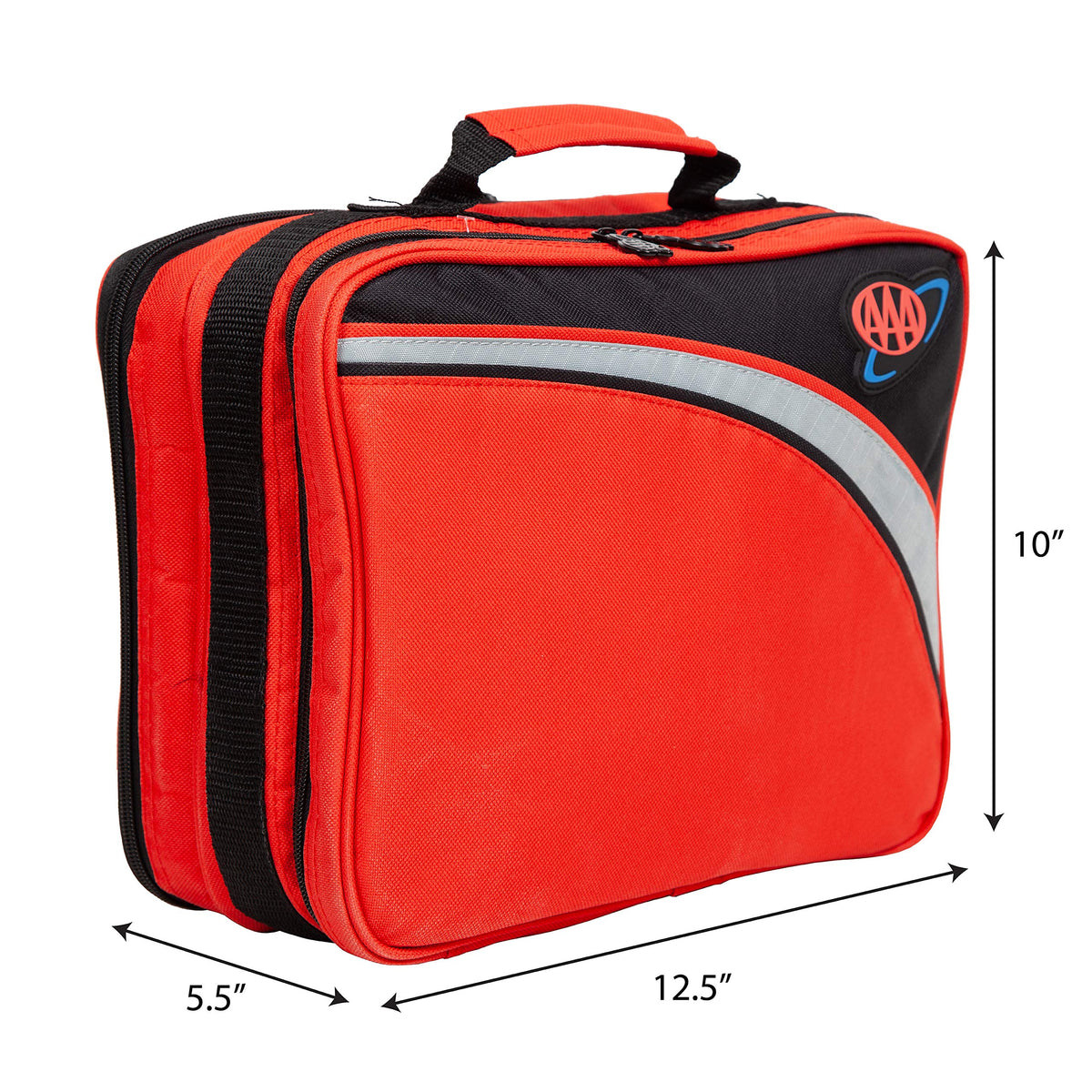 As the exclusive licensee of the AAA brand for roadside emergency safety kits, first aid kits and auto safety accessories, you know that you are getting only the finest products. AAA, one of the most recognizable and trusted names in the automotive industry, has been around for more than 100 years and is dedicated to helping travelers with roadside assistance, travel services and more. All of the components within our AAA line of auto emergency safety kits and accessories must meet minimum standards set forth by AAA engineering department, and before going to market undergo strict testing requirements to ensure the safety of the product, as well as the ability to live up to its promises. We have created a wide range of road kits, first aid kits, and auto safety accessories, to help meet the safety and preparedness needs of travelers across a wide range of price points. The AAA branded Excursion Road Kit contains 76 key components to help keep you prepared for those unforeseeable events ranging from finding your car with a dead battery, or with a tire that has run low on air, or simply needing a flashlight to look in those dark places under the seats to try and find your kids favorite dinosaur toy. The Kit contains; Double Sided Carry Case, Air Compressor/Tire Inflator with Pressure Gauge, 10 Foot 8 Gauge Booster Cable with Vinyl Coated Clamps, Emergency Warning Triangle, LED Aluminum Flashlight with Batteries, Flathead and Phillips Head Screwdriver, Pliers, Gloves, Duct Tape, Emergency Poncho, Utility Knife, Bungee Cord, Emergency Whistle, 2 Shop Cloth, 10 cable Ties; 25 Bandages and other assorted first aid kit essentials.
