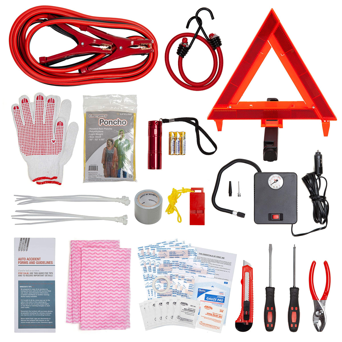 Lifeline 4388Aaa Excursion Road, 76-Piece Car Air Compressor, Jumper Cables, Flashlight And First Aid Kit