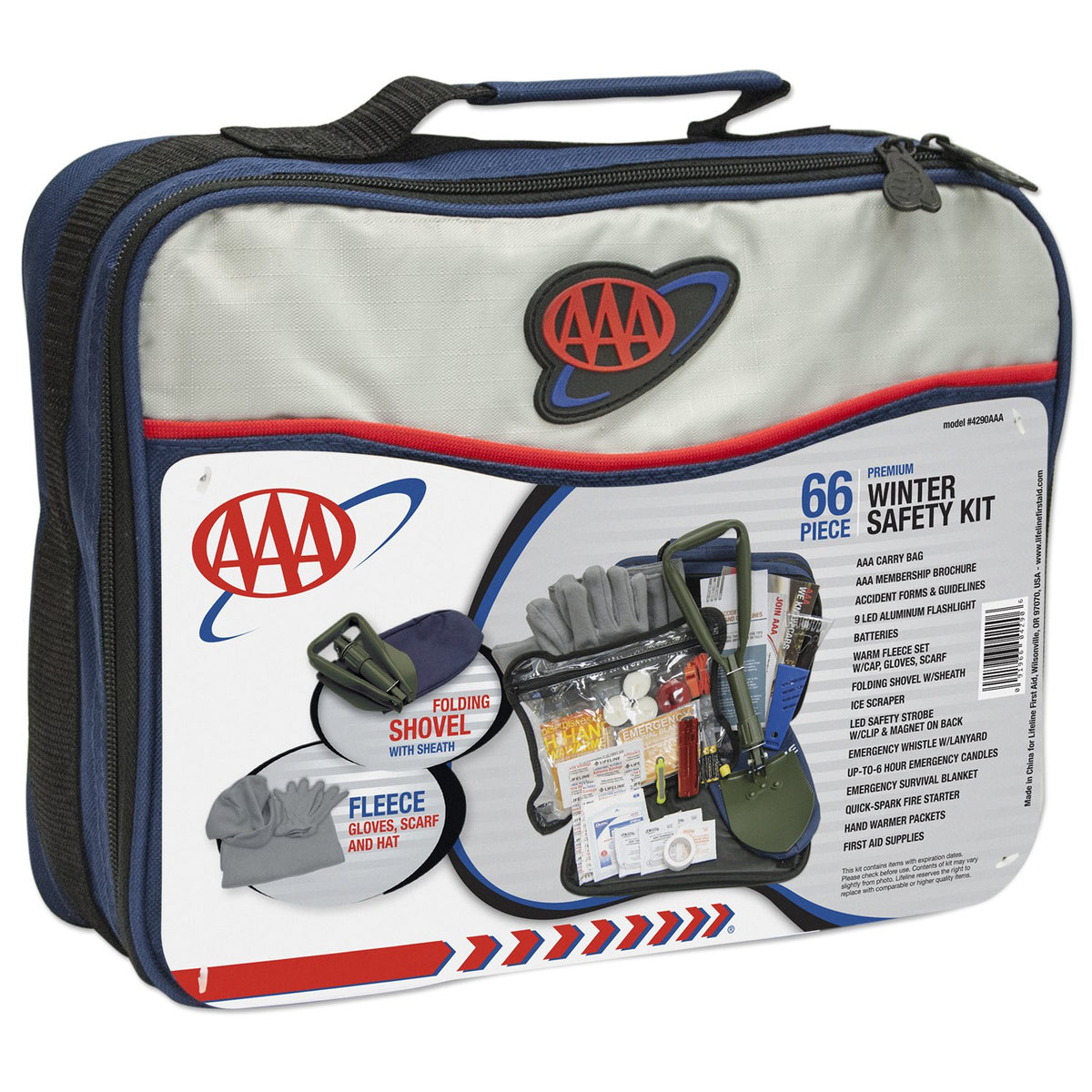 Lifeline 4390 AAA Severe Weather Emergency Road Safety Kit - 66 Pieces - Featuring Emergency Folding Shovel, Fleece Set, Fire St