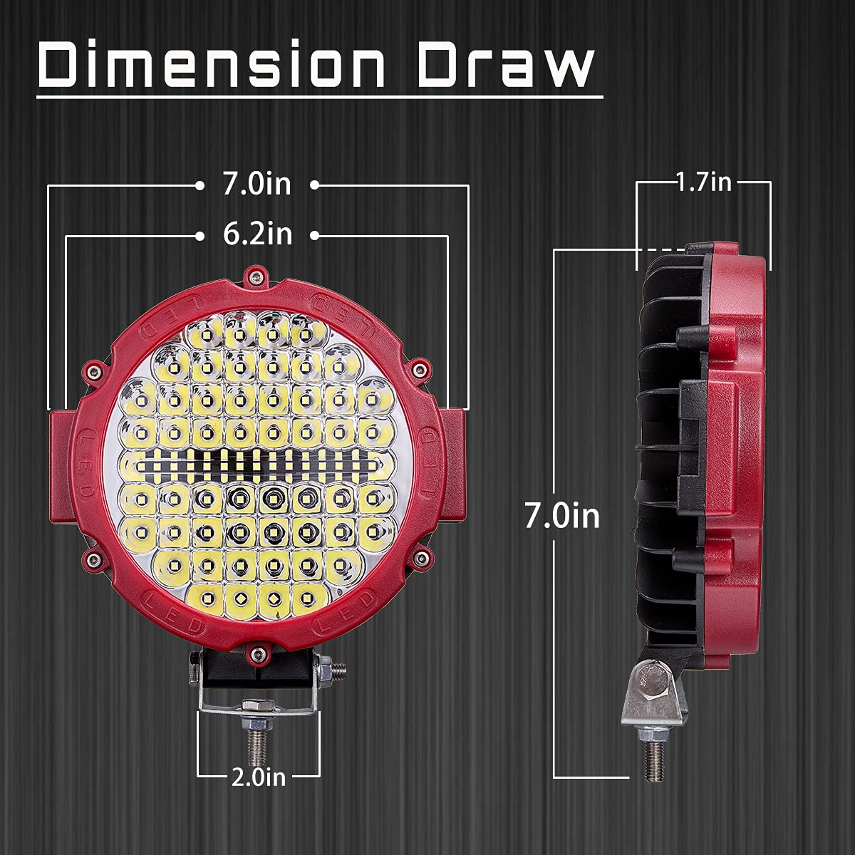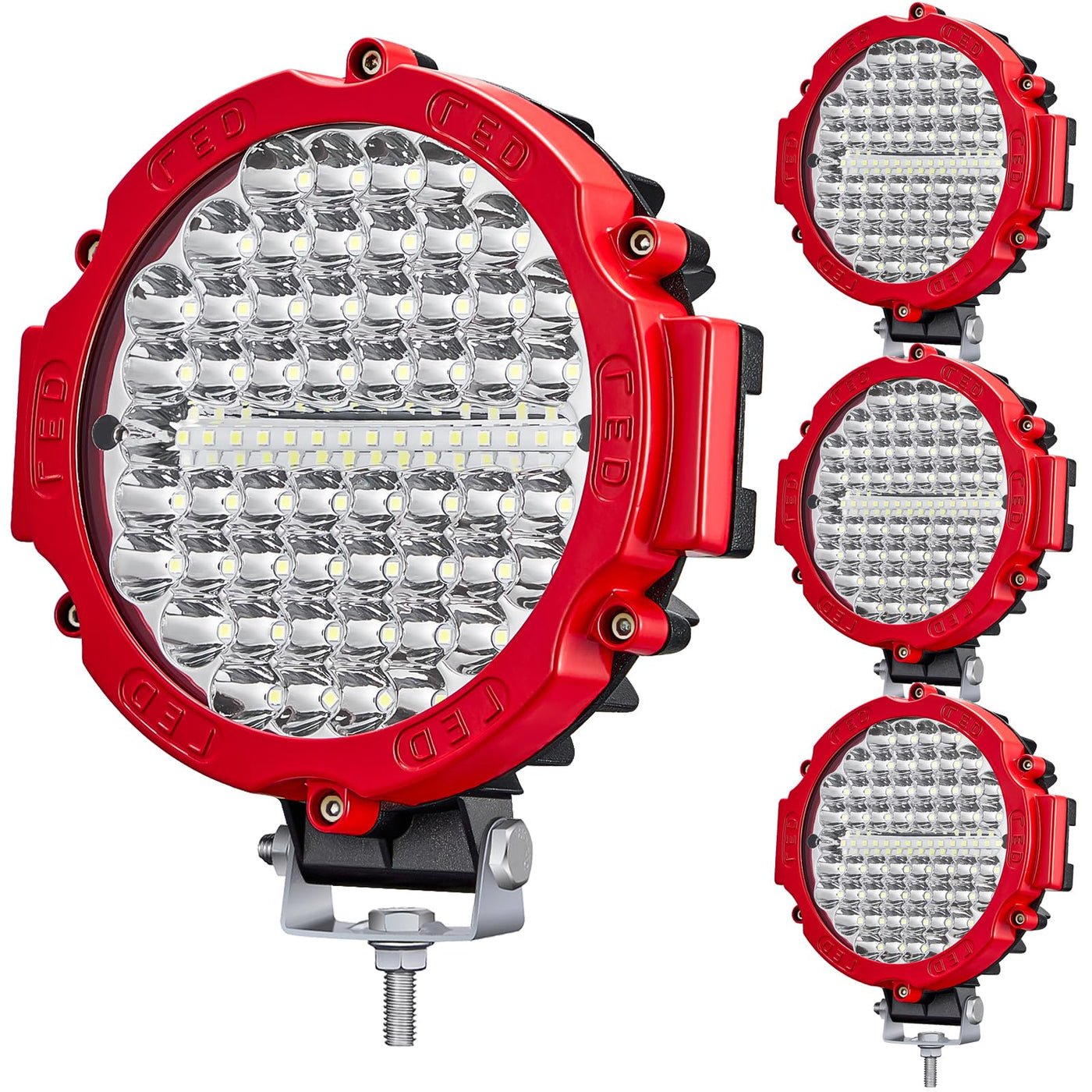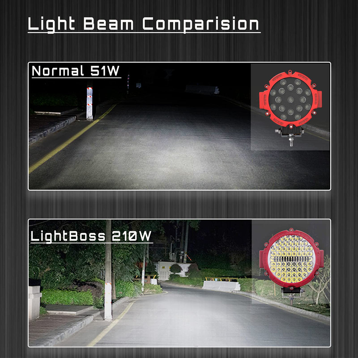 Lightboss Led Pods 10-60V Round Driving Offroad Lights 210W 21000Lm For Trucks Trailers Working Driving, Pack Of 4, White Beam Red Housing
