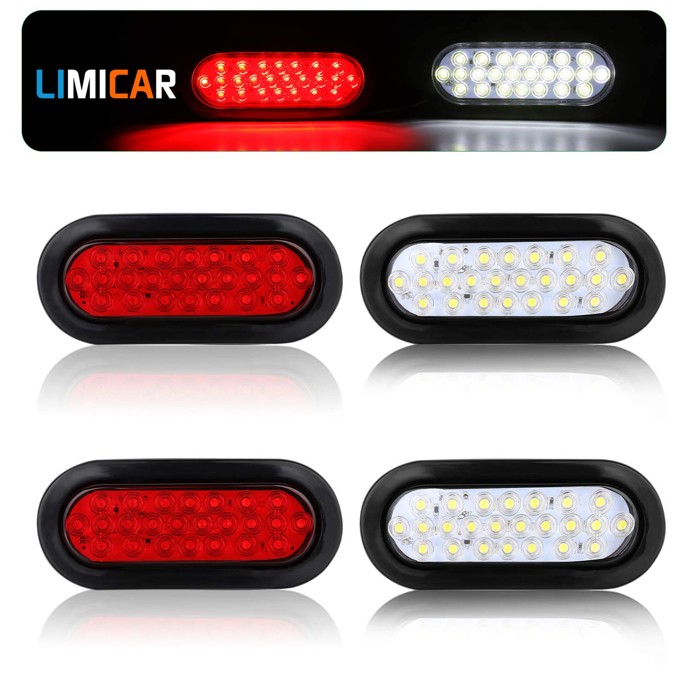 Limicar 2 Red 2 White 6 Oval Trailer Lights, 24 Led Flatbed Light Kit, Brake Stop Tail Running Oval Led Lights, Led Tail Lights For Trucks, Trailer Bus Rv Jeep Pickups Camper