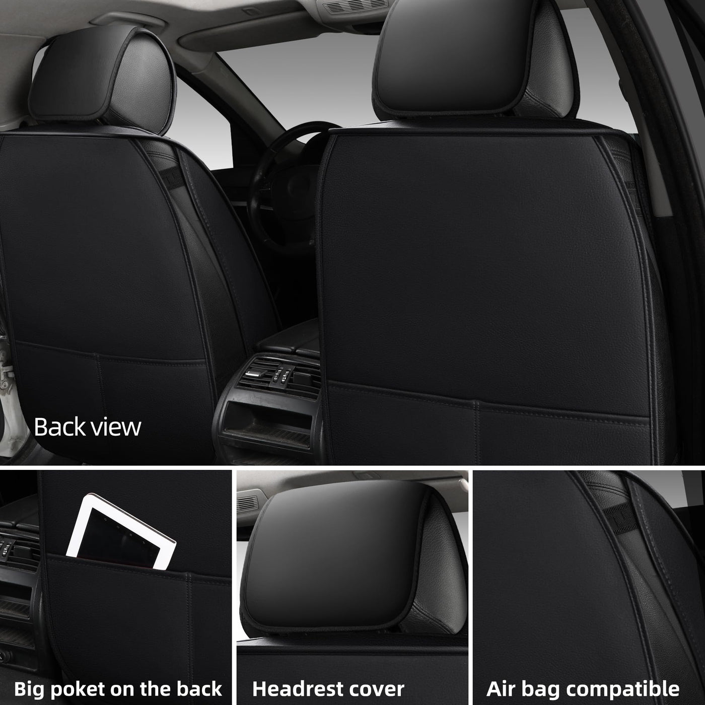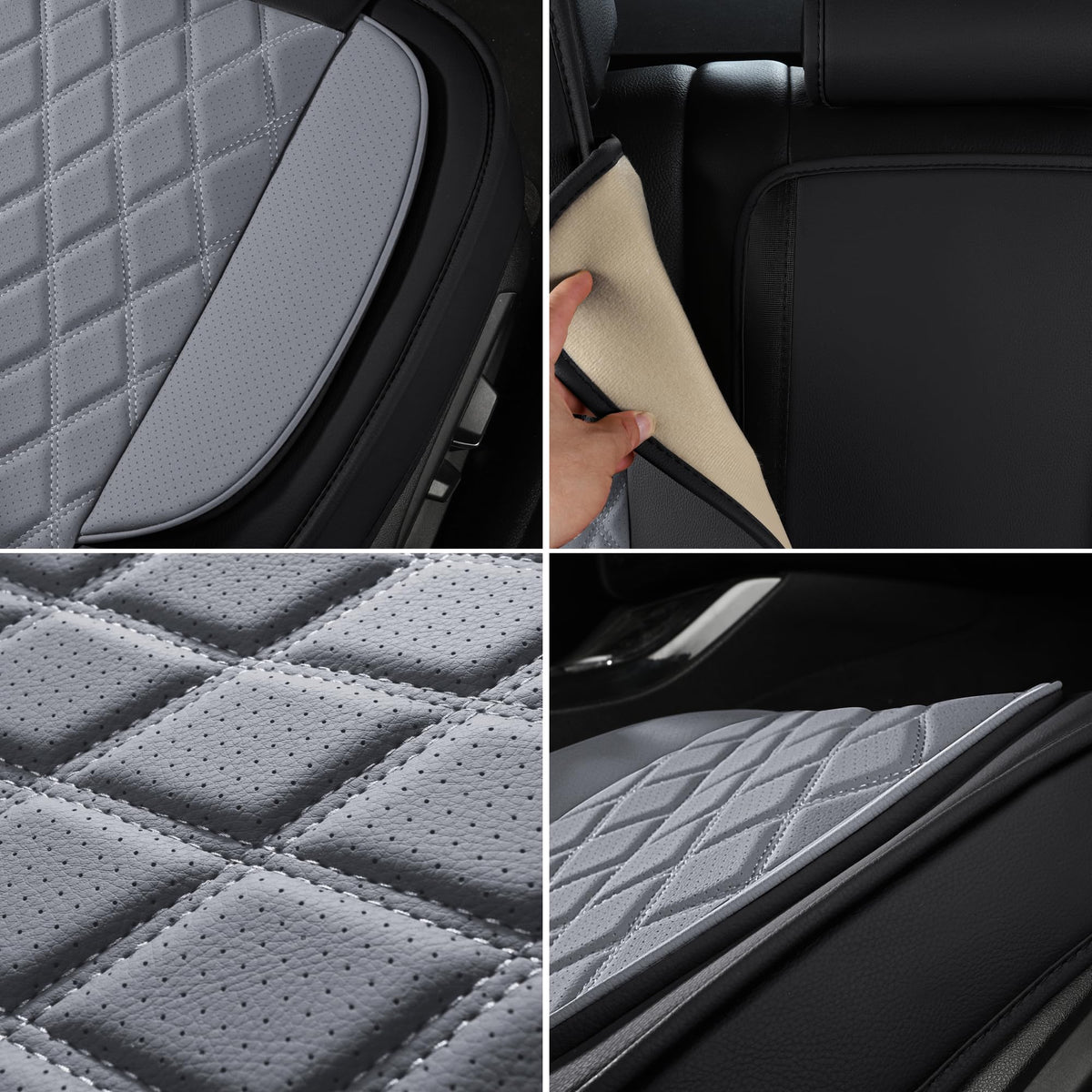 LINGVIDO Gray Waterproof Leather Car Seat Covers, Universal Fit Leather Protector for Cars, SUVs and Trucks(Black & Gray, Full S